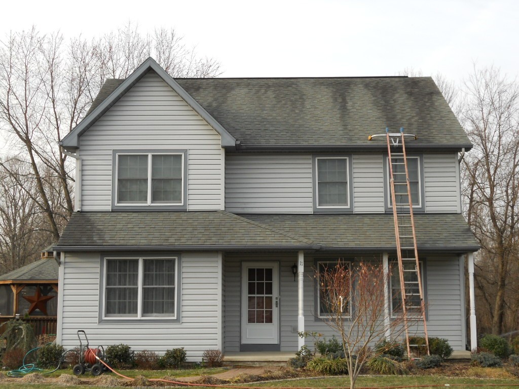 This home located in Douglassville Pa 19508 which resides in Berks County was cleaned using our safe soft wash methods. The home was being put up on the market and the owner wanted to make sure the roof would not be an issue for potential buyers. The real estate agent couldn't believe the results. He was so pleased he listed our service on his website for all of his clients to see. This is one of those instances where a simple service like this could lead to savings in the thousands for the seller on the sale of a home.