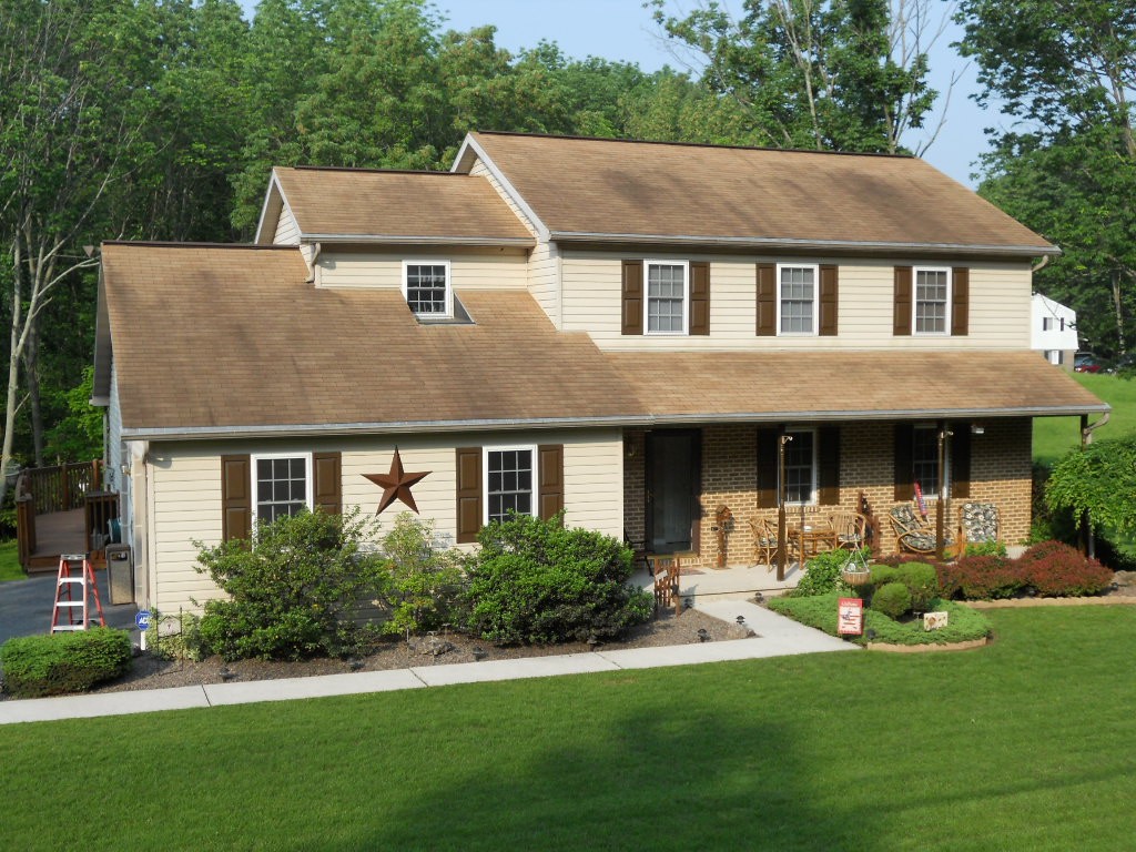 Landis Roof Cleaning in Berks County has just completed another roof stain removal treatment by using our safe soft wash method. This job was located right on the line where Reading, Oley, Birdsboro, and Douglassville, Pa intersect. The best part is this customer is in my own neighborhood, so I get the thumbs up eveytime I drive by on my way to restoring the rest of the shingles in my neighborhood. Check out our website for current specials.