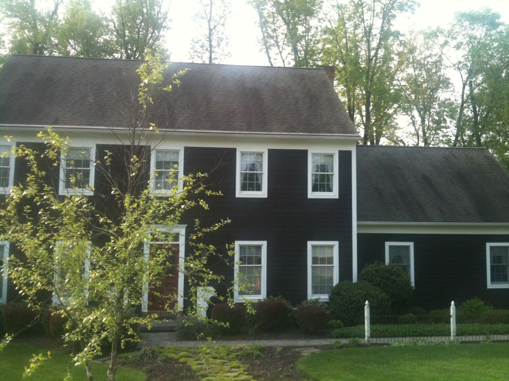 If your roof has black streaks or stains, replacement is not your only option. These streaks and stains are not necessarily a sign that a roof replacement is needed. Roof Cleaning by A&E Painting offers a non pressure delivery system that will effectively remove the black streaks, mold and lichen from your roof. Our system offers an affordable cost with instant results for a fraction of the cost of roof replacement. The average cost to replace a roof is between $6000-$12,000, depending on the size. Our system averages from $300-$900 depending the size and also includes free gutter clean out service to remove debris from the inside of the gutter to allow rain water to freely flow. Call or email today to schedule your free estimate and demonstration. (717) 324-4208
