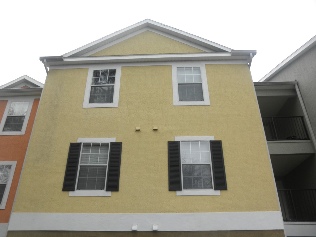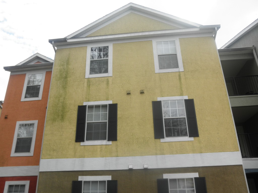 TECHNICAL NOTES FOR PROFESSIONALS: Whole projects was soft washed, had three weeks pressure washing free, which was nice!!! Interior concrete on breezeway floors was cleaned with a stronger % than on rest of property (20%). Exterior of units were sprayed at 10% SH, but halfway through the project we began using Green Wash from softwashsystems and significantly cut down our SH usage! With its use we were able to cut our SH % down to 5-6%. I am SOLD on Green Wash now!!!!