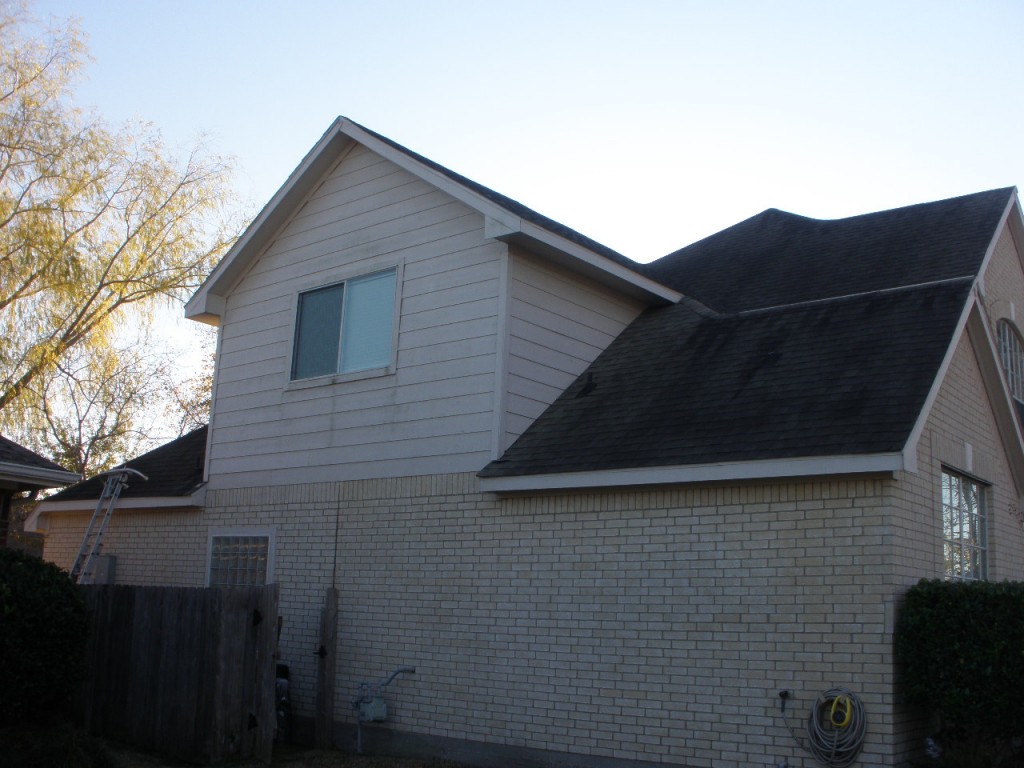 Here are the pictures from my Houston Texas Roof Cleaning job this morning. It was only 36, not the 32 I was hoping for. Still though, the roof cleaned up great. It wasn't one of the dirtiest I have ever done. I was actually called out to clean one side to remove some green algae stains for a HOA violation. But after walking the entire property, and pointing some of the other areas, especially the roof, the customer had me clean the Roof, House, and all Concrete.