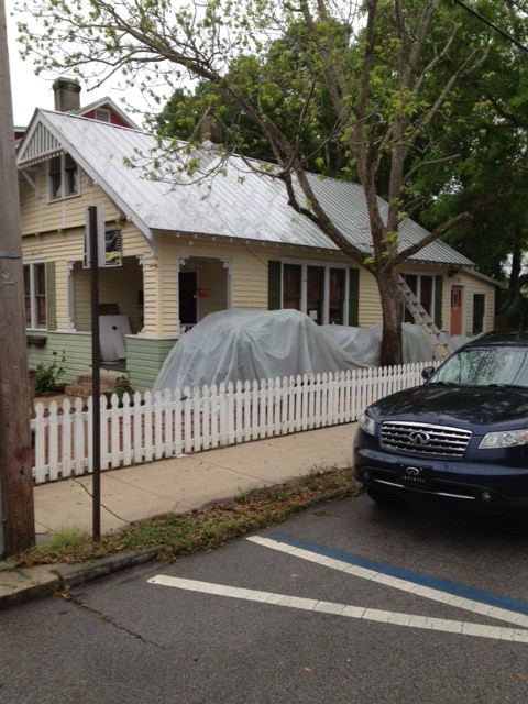 The north side of the roof is pretty bad but the south side is almost spotless. I could probably sling a ladder over the ridge, anchor it, and low-pressure wash the whole roof with 3-4 moves. Winds are supposed to be 10-20kts here tomorrow. This property is in the oldest historical district in the country.