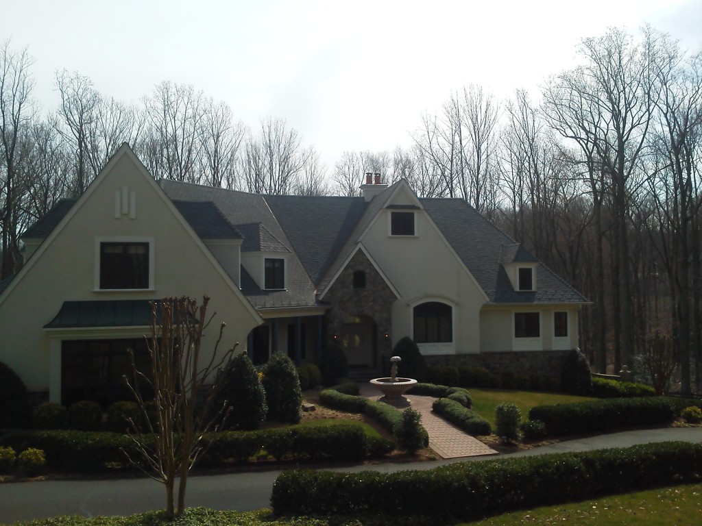 Here's the house. It's actually not that badly infected. I doubt you can even tell from the photos. I am estimating about 225 gallons of mix. The only problem is that there is copper flashing in the valley and also the snow stops are copper. Any ideas on working around that? Also, on previous straight SH slates i've done I rinsed after. Would Ya'll? Thoughts on Copper and rinsing...?