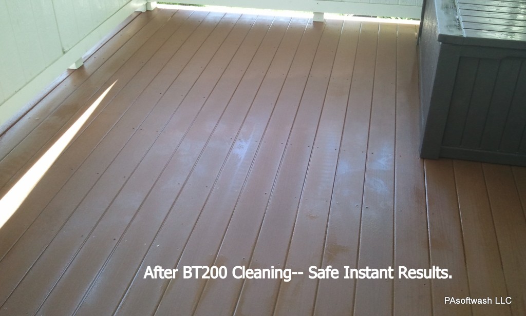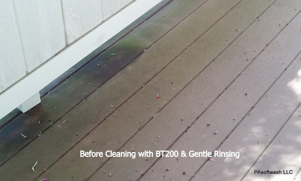 We softwashed the vinyl siding, gutters, facia and then we treated and cleaned his composite deck with BT200.