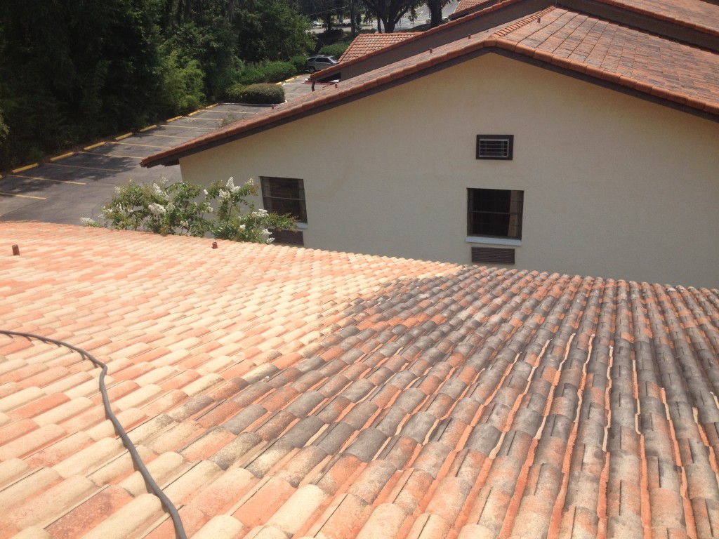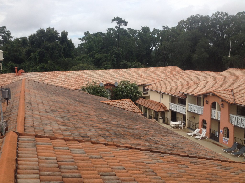 Spray Wash has cleaned the roof at the Super 8 Motel in Tallahassee, Florida. This roof is a semi-glazed concrete tile, which according to management has never been cleaned in its 30 years lifespan. Needless to say, everyone is THRILLED with the results.