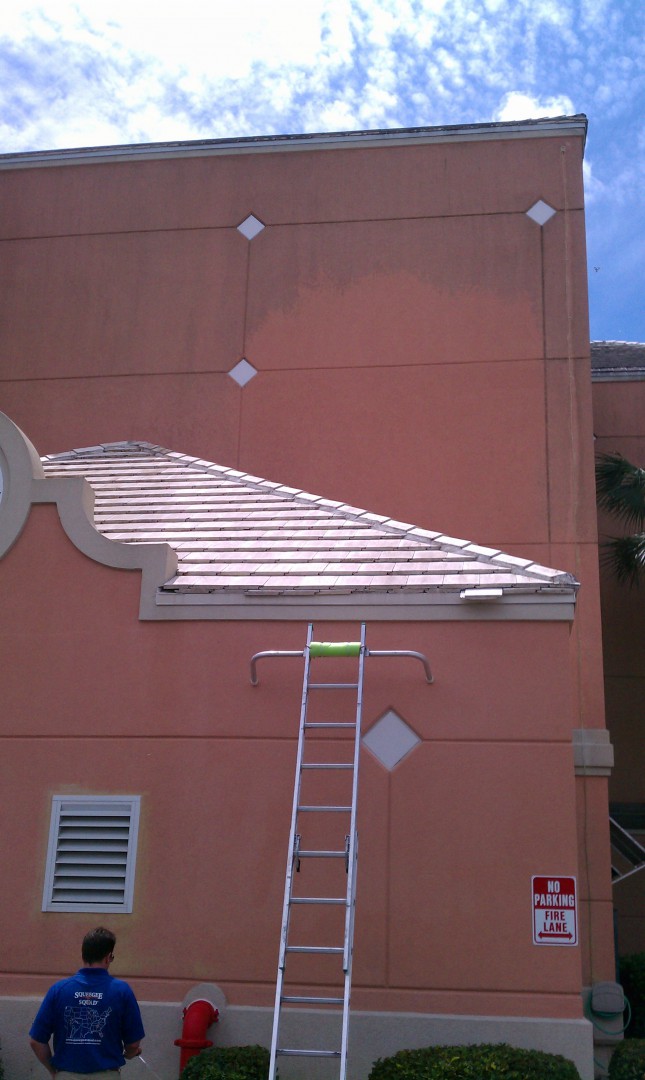 This October the PWNA will be having their yearly convention at the Embassy Suites Lake Buena Vista in Orlando. Squeegie Squad cleaned all of the flat tile roofs roofs at this resort back in May 2012. It is very exciting for attendees of the PWNA National Convention to be able to see the results and what a $15,000.00 one week SoftWash roof cleaning looks like.