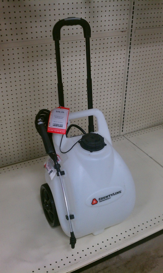 Saw this at Tractor Supply. 5 gallons, portable, rechargable...$99.00