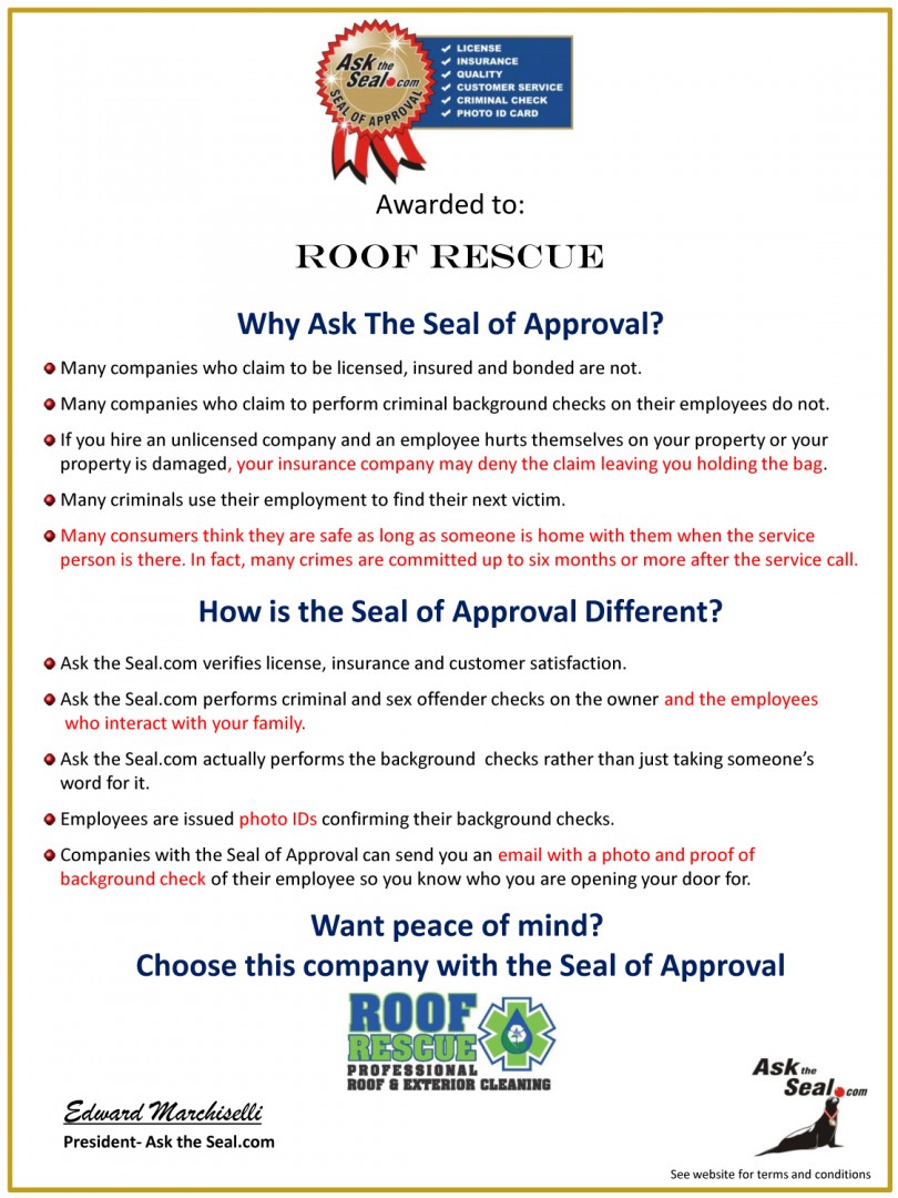 Check it out! Matt Lancaster is now an Ask The Seal vetted and sealed company. That was his last step to become SoftWash Systems Authorized! Congrats Matt!AC