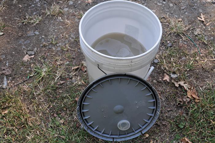 - Mix your gutter cleaner in a 5 gal bucket with a water tight lid.