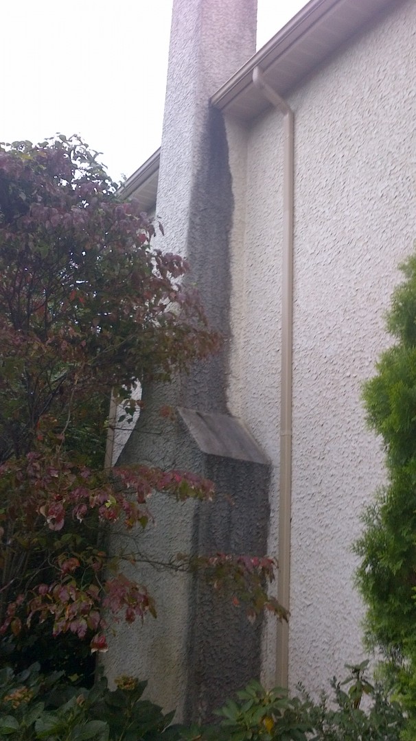 I attached photo of stucco chimney that is dirty. Dirtiest one that I've ever attempted. It was a neighbors house from a job, we cleaned, and while wet there was still showing staining, but much less. I told homeowner to let it soak in and we will look at again later. I stopped by today but it was wet from the rain today and I couldnt tell if it was better or not. I am going by house Saturday, if stain still there, is there any other options I could try? Would gutter grenade work or a CLR?