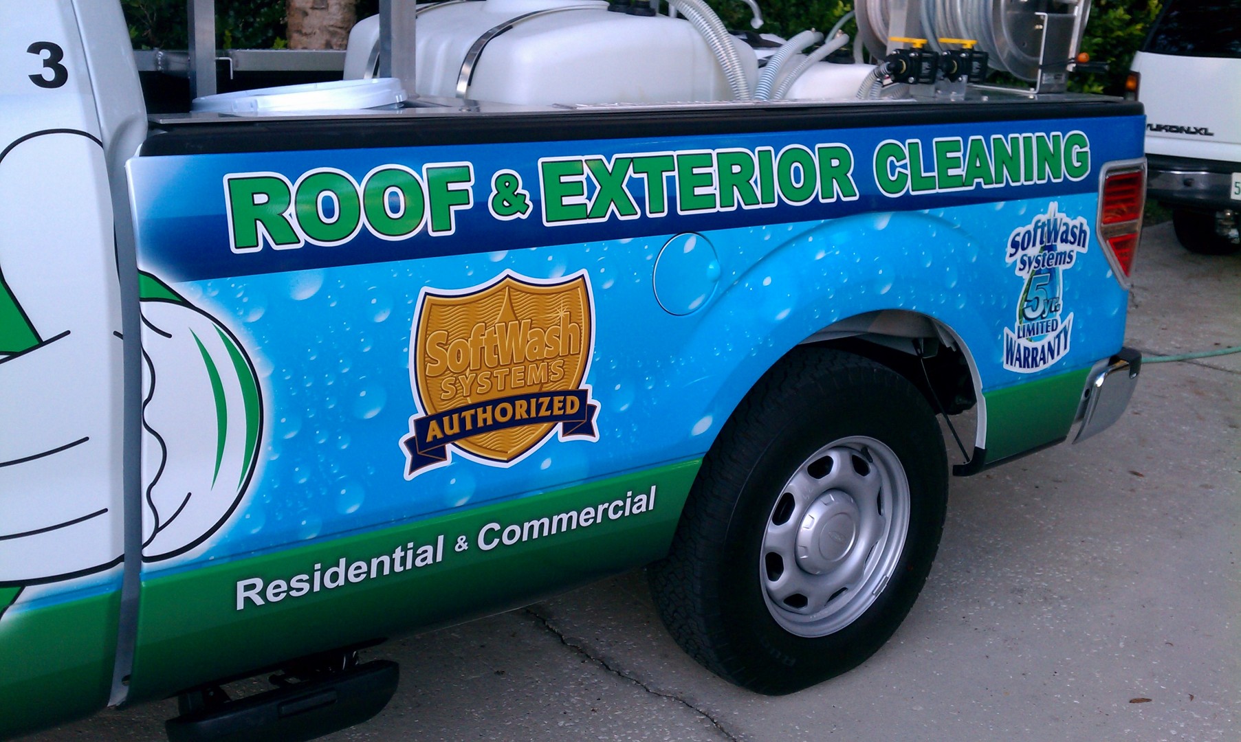 All the systems come trimmable to 6 feet. An 8 footer has room for the full softwash system as well as a tool box and a buffer tank.