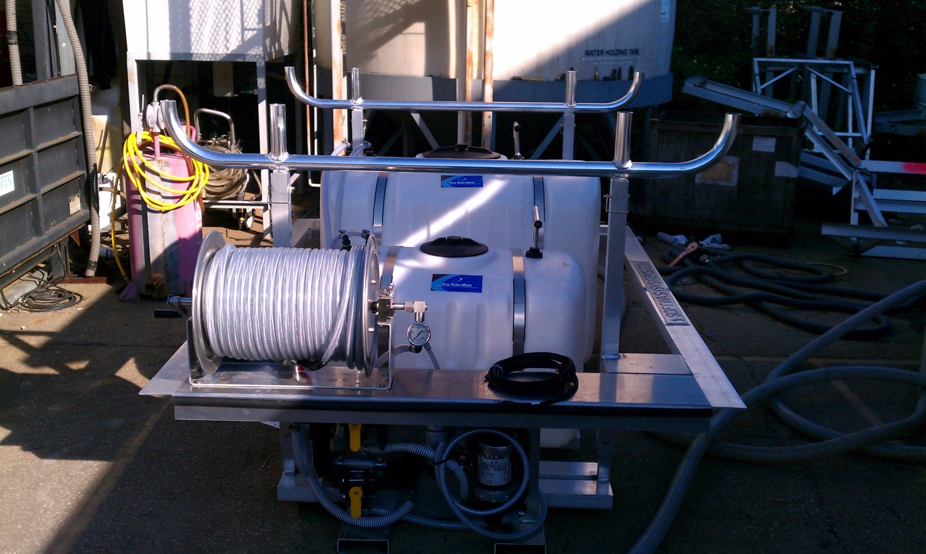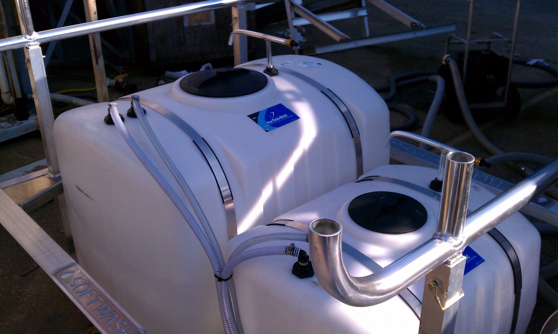 Here are some pix of the build of the TWO (2) Commercial Large Capasity 200 / 100 gallon SoftWash Systems.