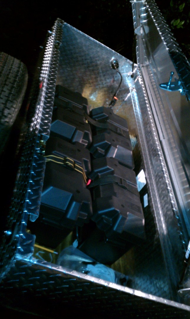 The new AC / DC STEALTH Charging unit came in. We will be loading this with four deep cycle batteries into a diamond plate tool box. This will allow Colm to charge the system by plugging in as well as it AUTOMATICALLY charge as he drives down the road. I should have prices up for these in the next several days.