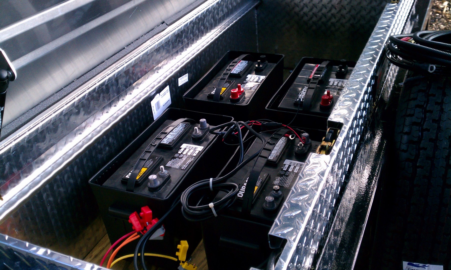 Stealth kit is an add on. The skid can run on one deep cycle battery if you run it in series with your starting battery. No batteries are included.