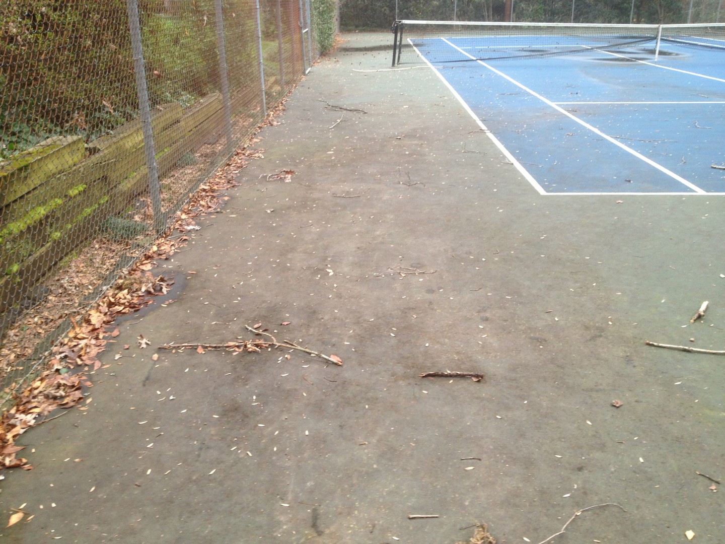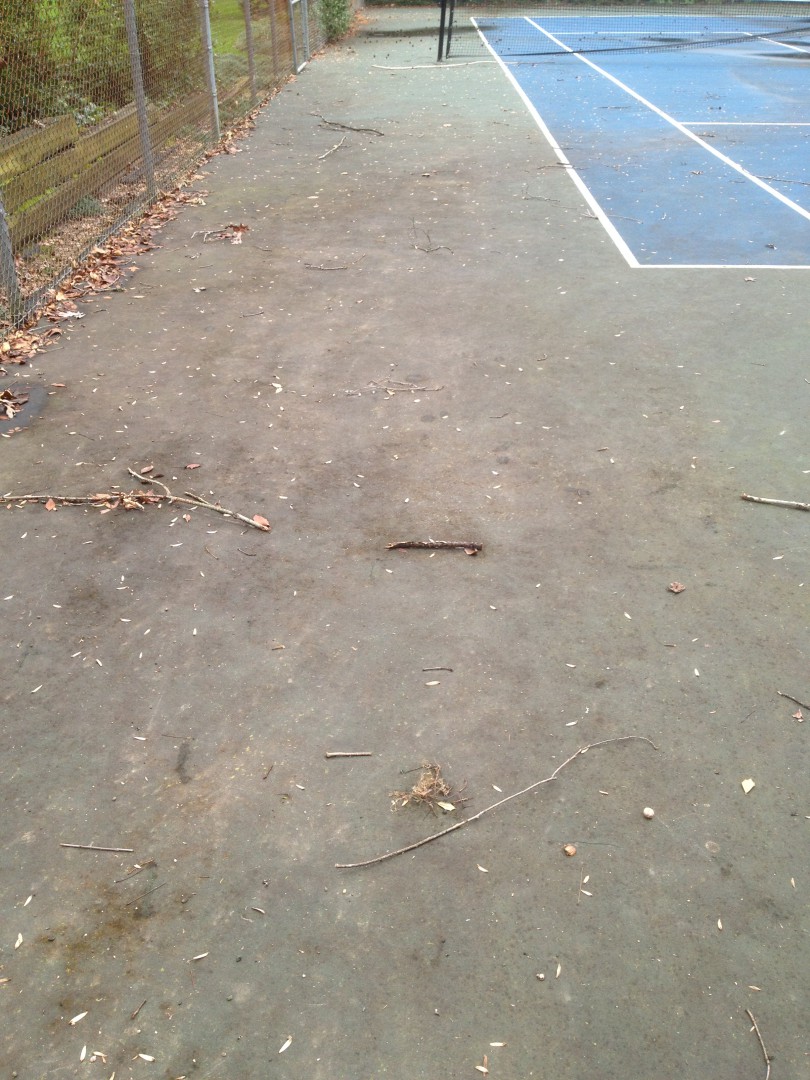 3. Make sure there is NO encroaching grass or weeds. Have the landscaper edge the court before cleaning if needed.