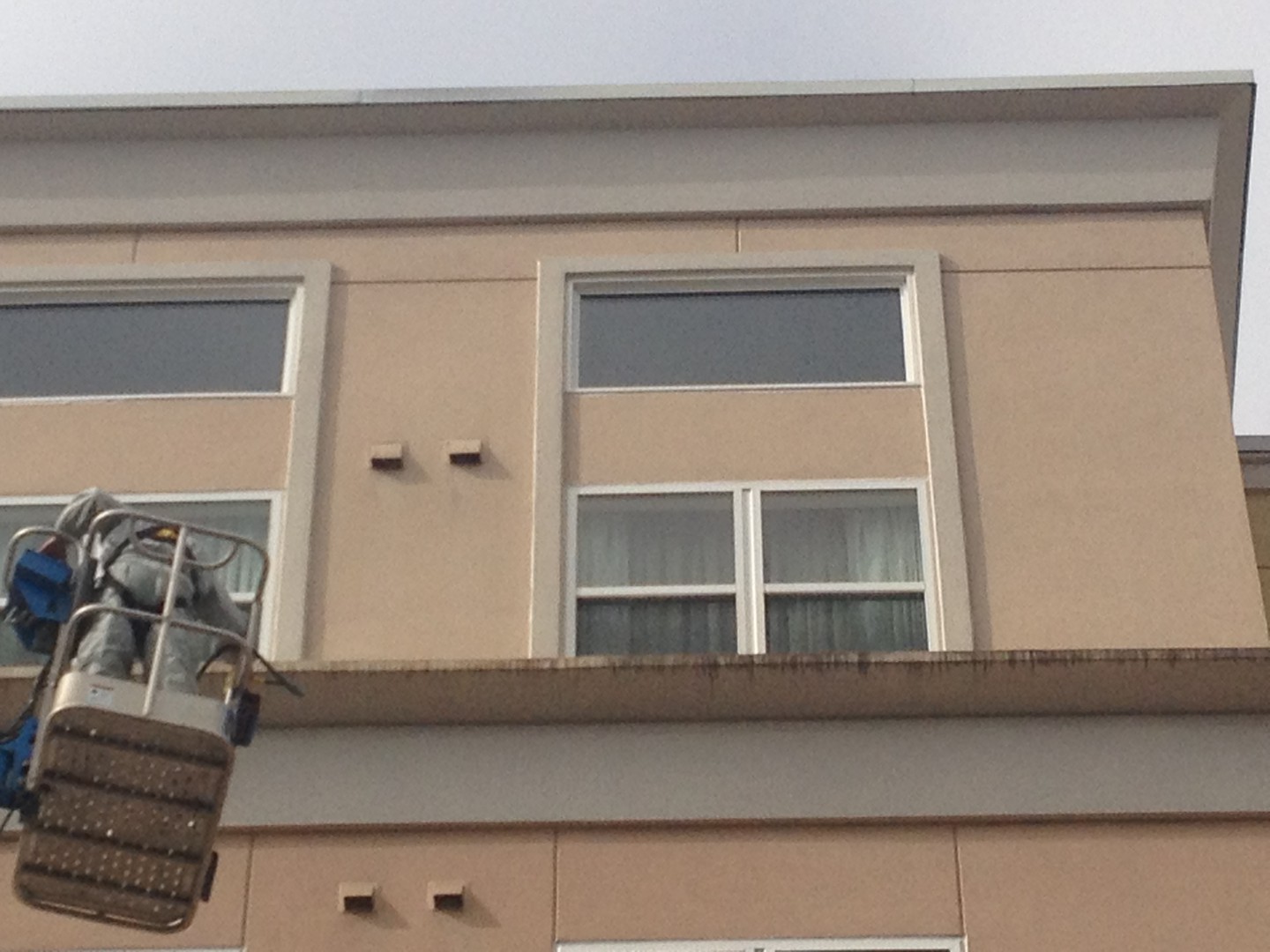 Hotel is a long term customer of mine (3 years) and worth several thousand $$$ per year. Thie scope of this work encompasses cleaning the "front" of the hotel adjacent to two streets. Job took three days and was softwashed at a 30% mix.