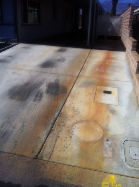 Paver Cleaning (Hard Water Stains), Oil and Battery Rust on Concrete