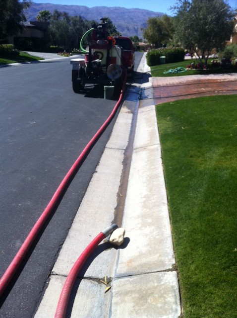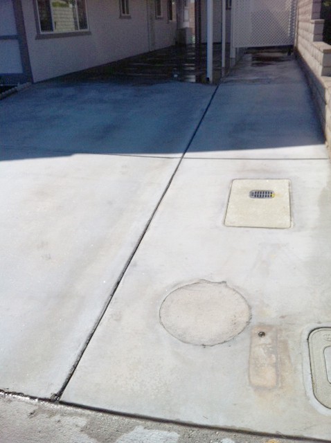 The hard water stains happen all over the place as well. This is a different application method and the calcium gets very slippery. Resorts get quite a few slip and fall situations. There is a measure of the COF (Coefficient of Friction) and the ADA (American Disability Act) states that the concrete must have a certain level of friction. Our process to remove these hazards is cost effective for these resorts and pays big bucks for us.