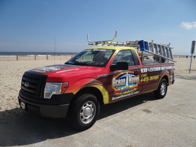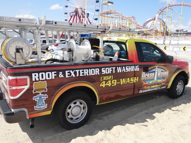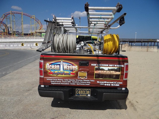 Ocean Waves Soft Washing new Truck Wrap New School Surf Woody Cleaning Machine