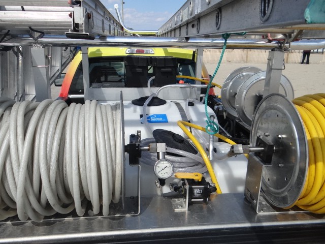 I also added a 6.5 hp honda pressure washer and hose wheel to the SWS skid as well, and a water feed pole for exterior window cleaning