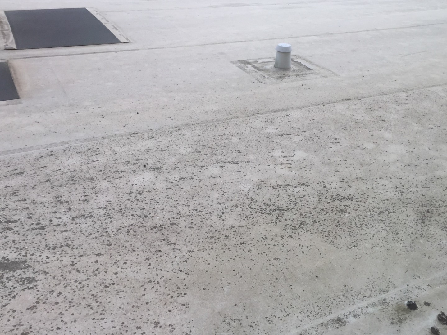 I found out the roof is made out of EPDM. Attached are some pictures of it. I didn't see any gutters so I will need to find out where it drains to. I'm assuming it drains into the parking lot or a storm drain.