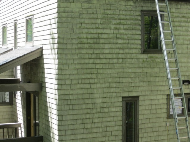 Roof Cleaner preformed a siding wash on a cedar sided home in the Grand Haven Mi area today, lots of mold, dirt and coal ash buildup on the siding, after a quick wash at 1%, rinse, GW, rinse and then PW. Home came out great and the homeowner was overjoyed.
