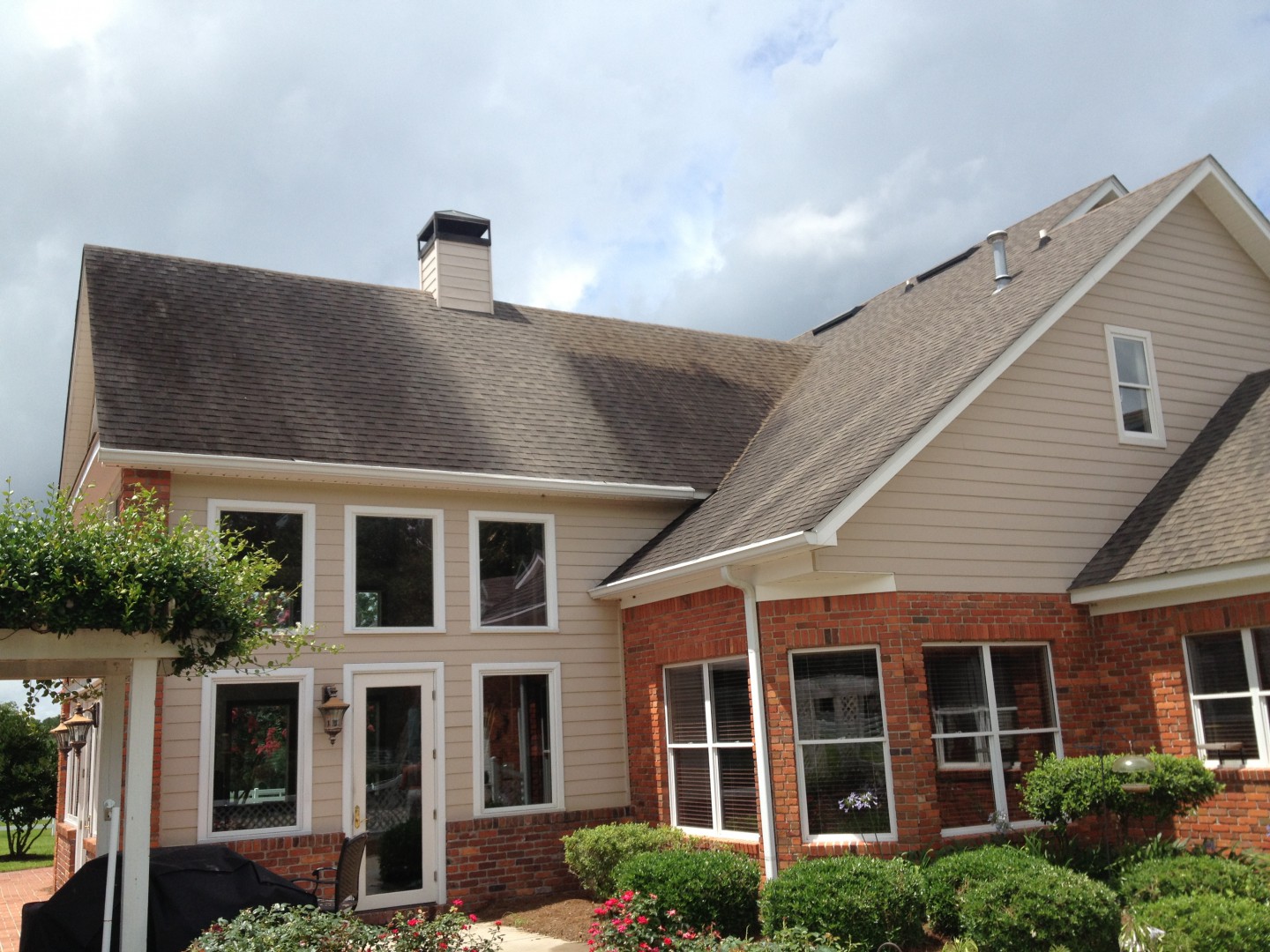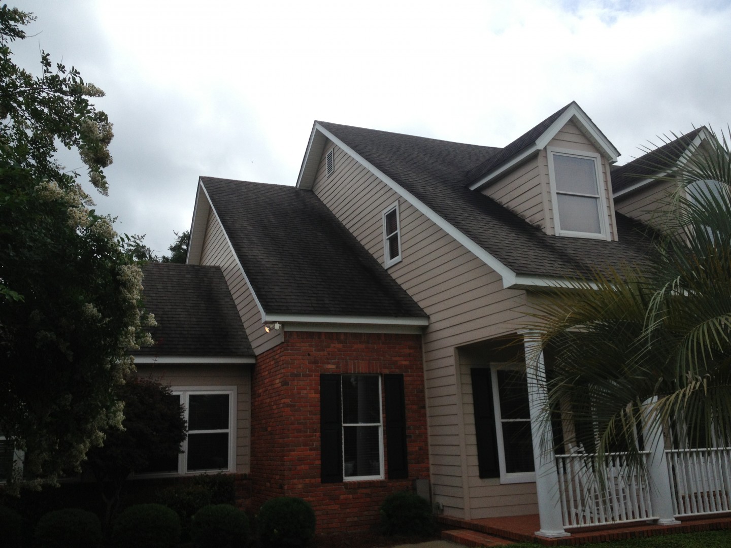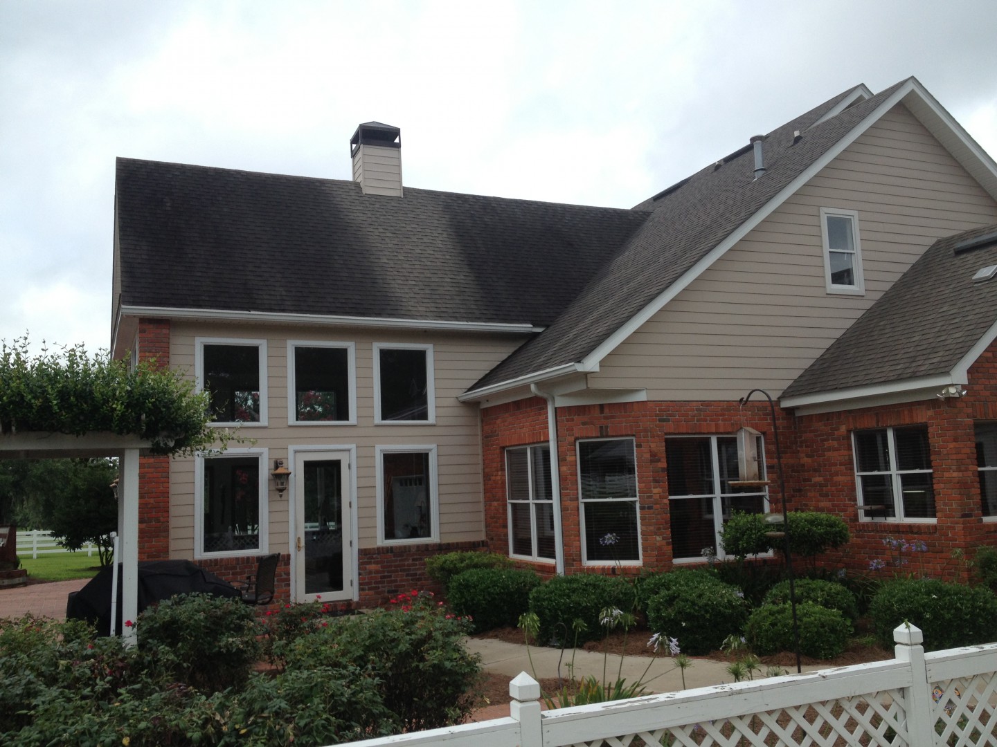 The roof cleaned up great! We cleaned away years of grime, and algae, leaving the shingles looking "good as new"!