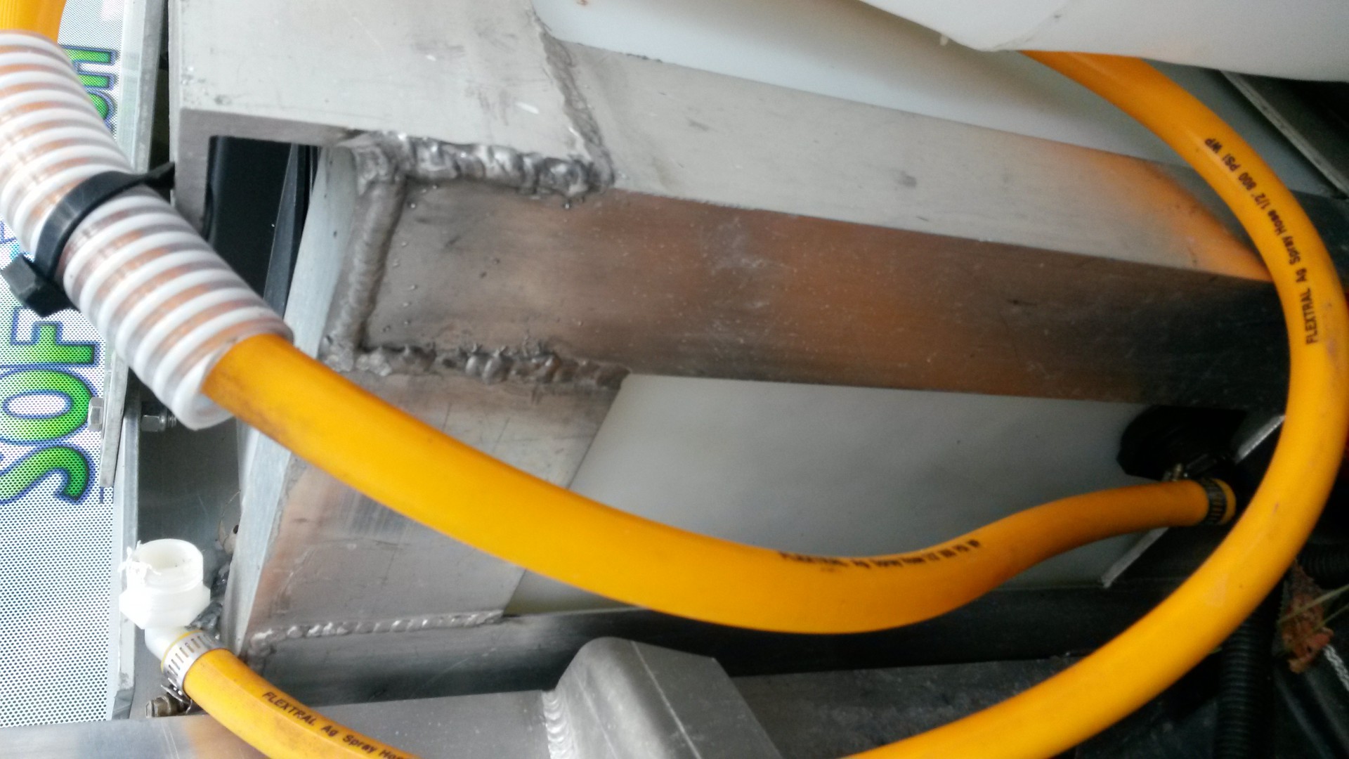AC..here you go. The yellow hose is a bottom tank feed out hose, and the right side has the brass inlet fitting. Both black caps come off. It came with the cradle as an option when i bought the skid as is.