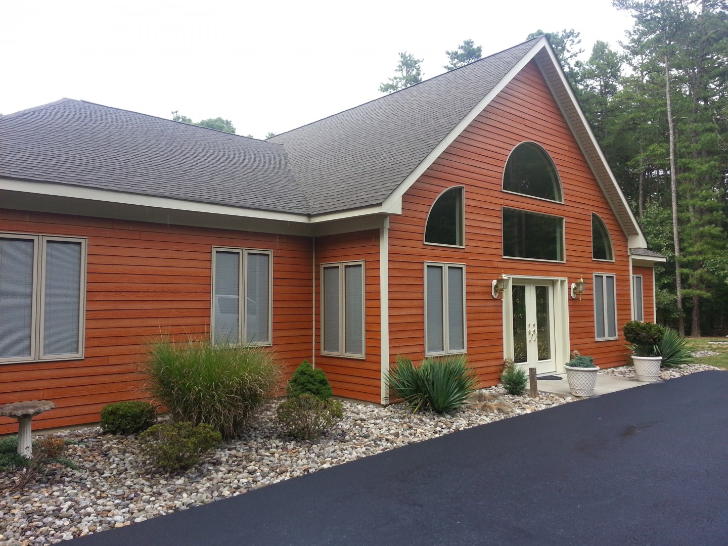 Hardi board is a cementious siding board & dryvit is a trowel-able cement based coating over an insulation board. You can softwash them both. We have used a 1% mix on both. Here are a few pics of what each looks like.