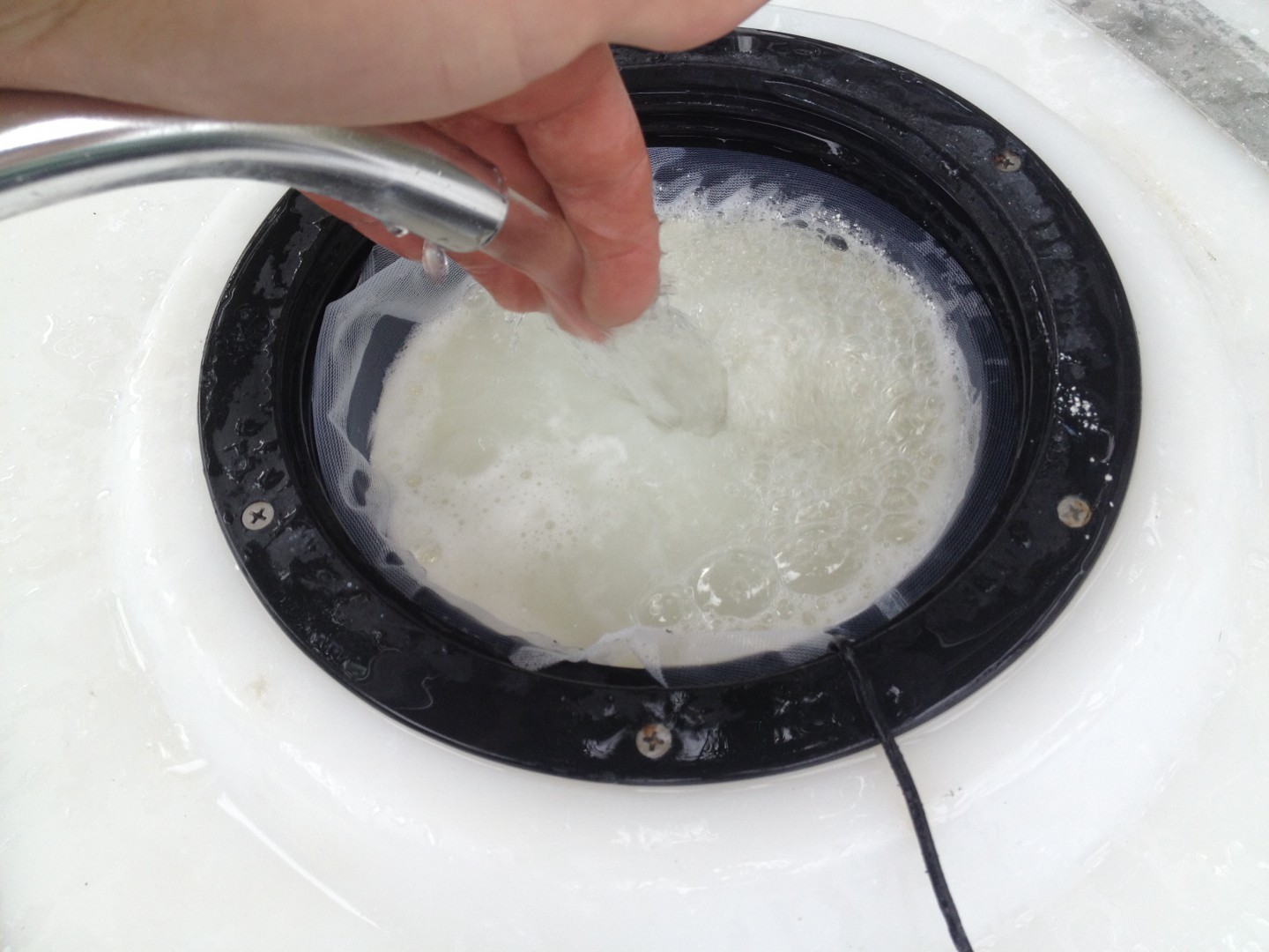 One cool thing I noticed is that CH's inert ingredients would settle into the bottom of the tank very nicely after about 15 minutes of not agitating the tank (see pic). On this job I kept it all suspended in the tank during spraying, but very soon I plan on dedicating a small pump and line plumbed into the bottom of the tank to separately pull this stuff out after settling - in theory eliminating any residue concerns all together.