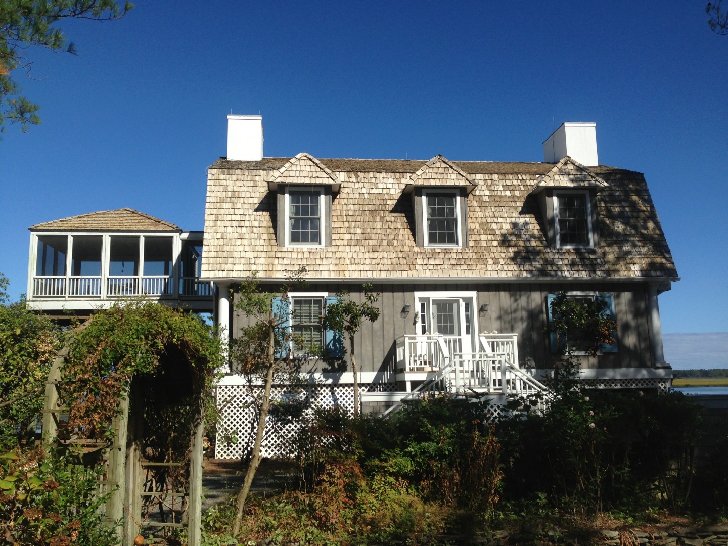 So here is our first cedar roof, we don't really have any here.. This house was pretty tricky to learn one, the gazebo was lifted 20ft in the air with no gutters, the roof on the house was a barn style roof so the sides were straight up and down.. But it came out really nice!