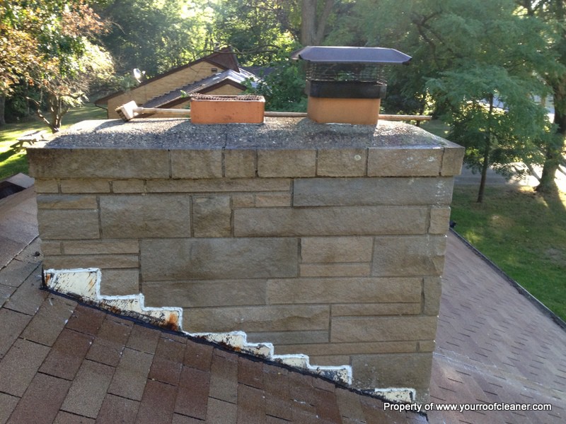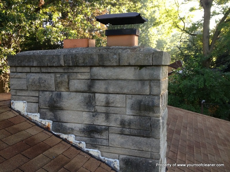 While we were cleaning the roof of this home in Kalamazoo, MI we decided to try our softwash mix on the chimney to see if it would clean up, needless to say the homeowner was very pleased with the results. We sprayed a 2% mix and let it dwell while we sprayed the roof, 10 minutes later - all clean.