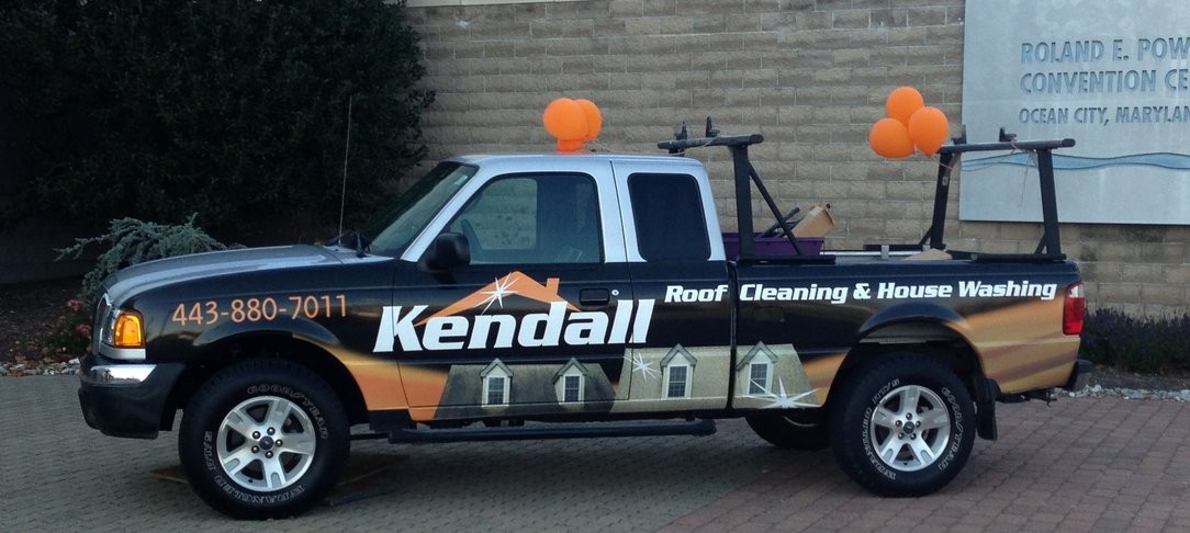 I figured simple is best on this small truck, most people see it for about 3 seconds, so if they see a actuall before and after of roof cleaning it may click in there head. Most people dont know what roof cleaning entails when they see the words written so this provides a picture. The logo and name and number are also across the tailgate as well..