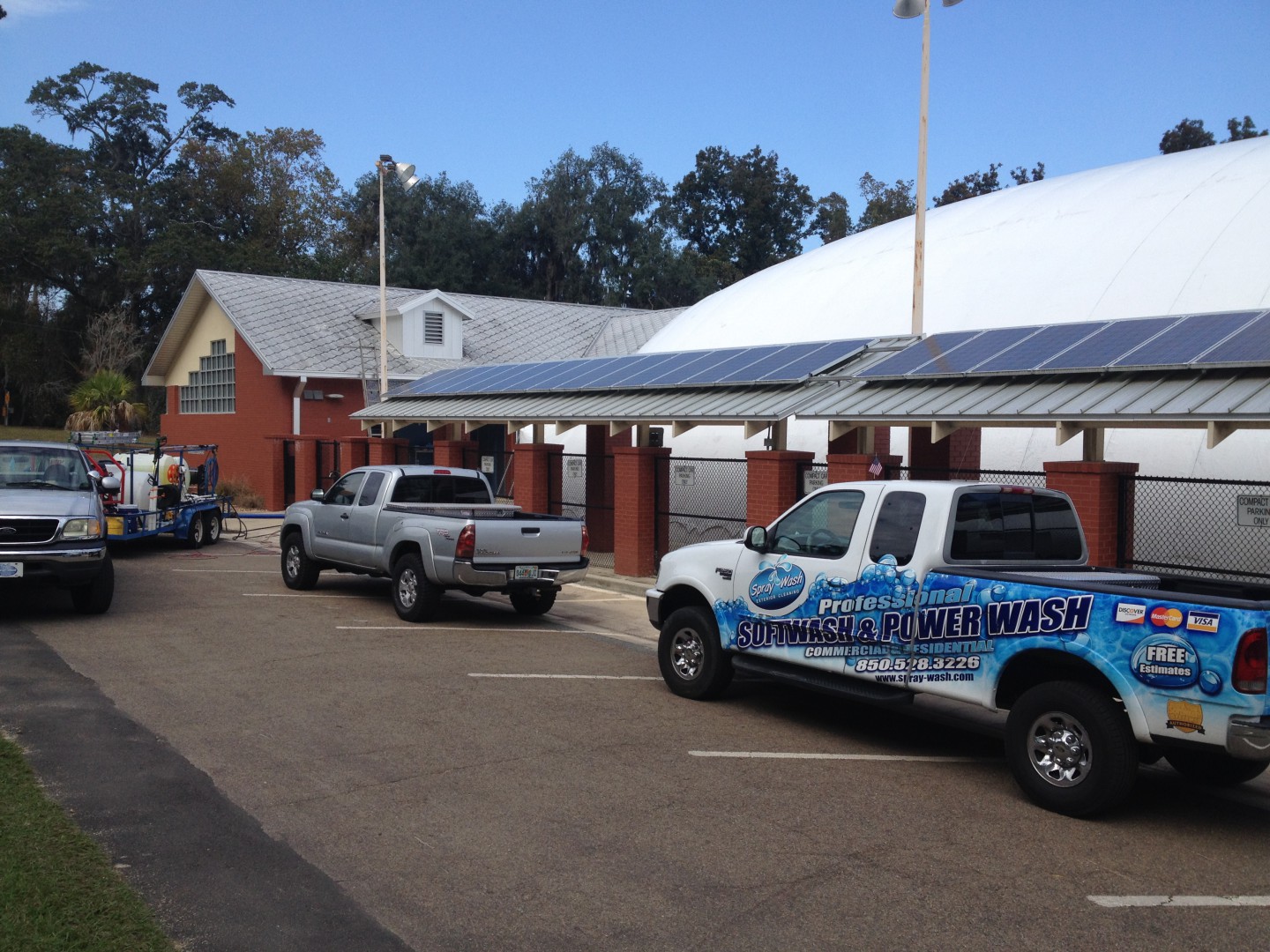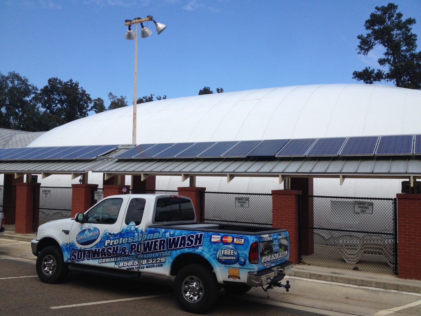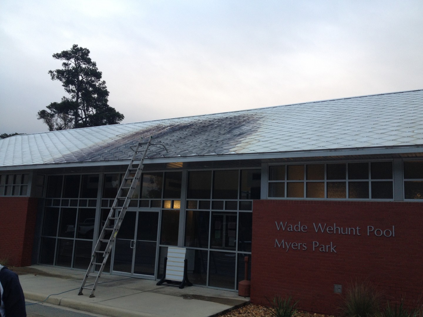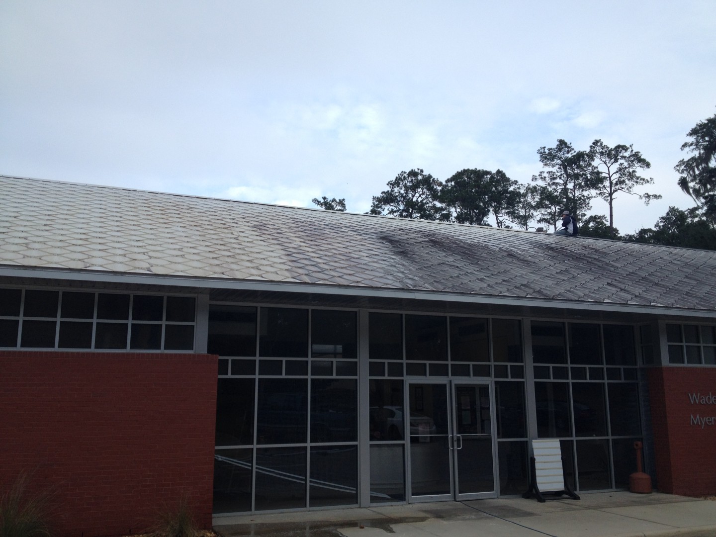 Cleaned this unique roof today. On initial glance, it looks like a old school ceramic/asbestos tile roof, but its actually individual metal tiles. Cleaned up at 1% with two to three coats. We also cleaned the big "Marshmallow" pool dome in the photos too, inside and out.