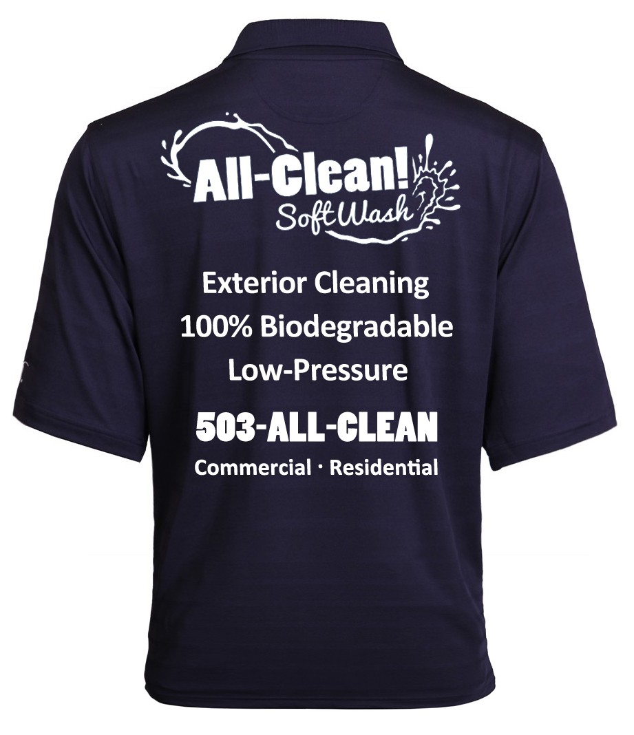 In our window cleaning division, all my guys wear tucked in branded polo shirts with neutral pants. I wanted to carry that over into my SoftWash business. After a couple attempts at some diff fabrics/and styles I settled on these.