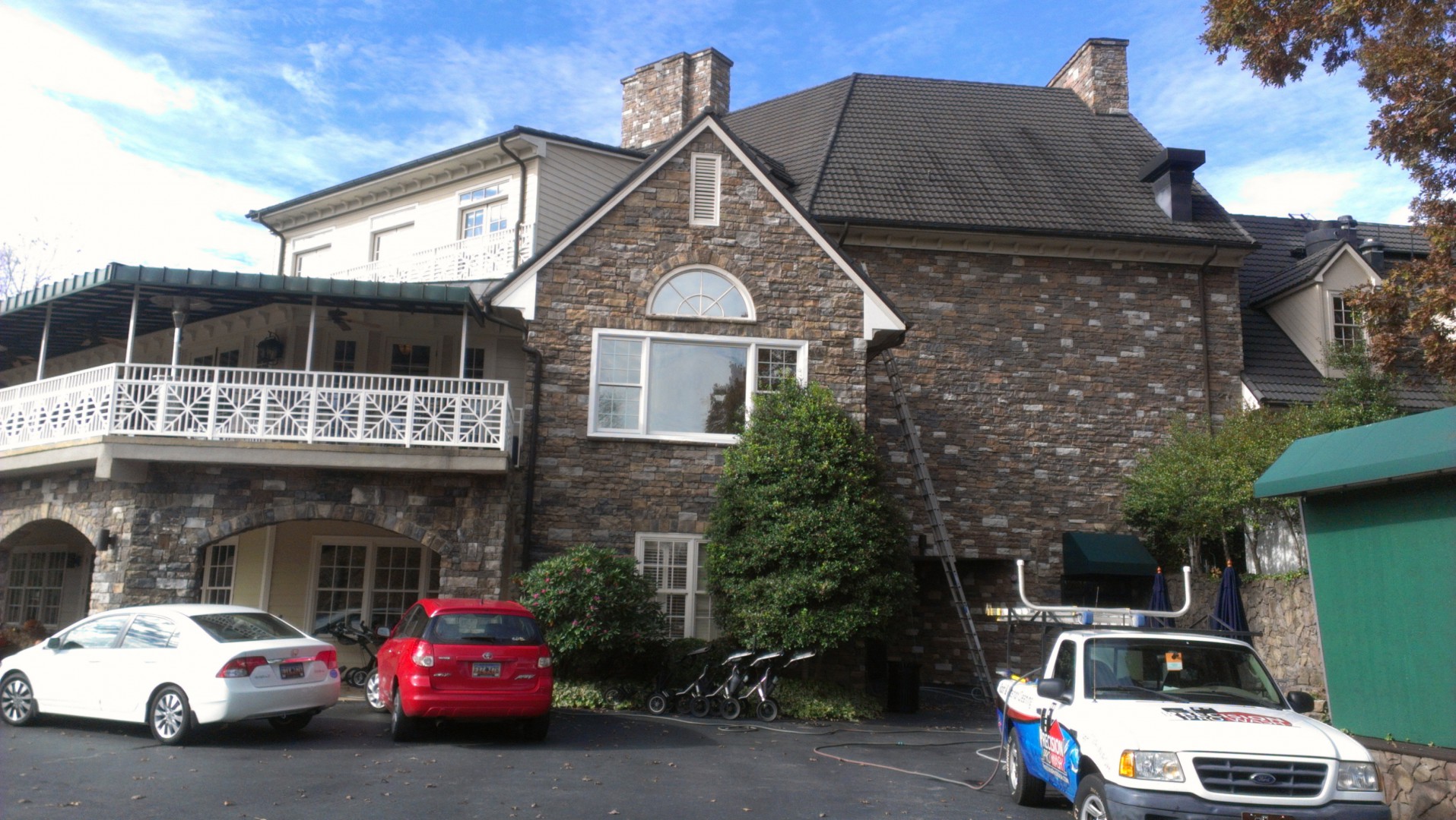 Here is a project we completed this past year. it's a 35k sqft club house Called the Cliffs community. We did the managers house and he was very impressed with our company. We cleaned the roof and building as well as the patios and windows.