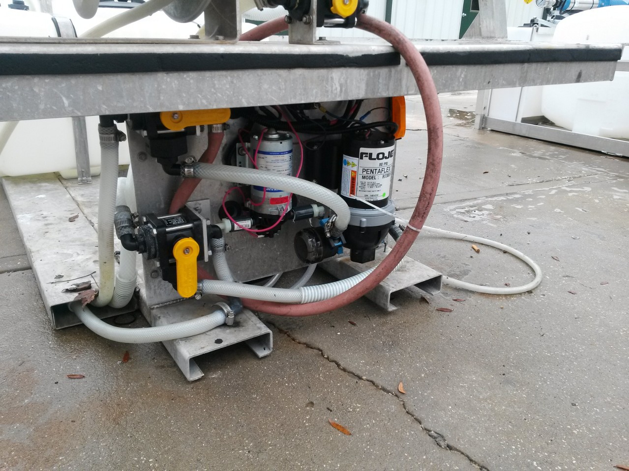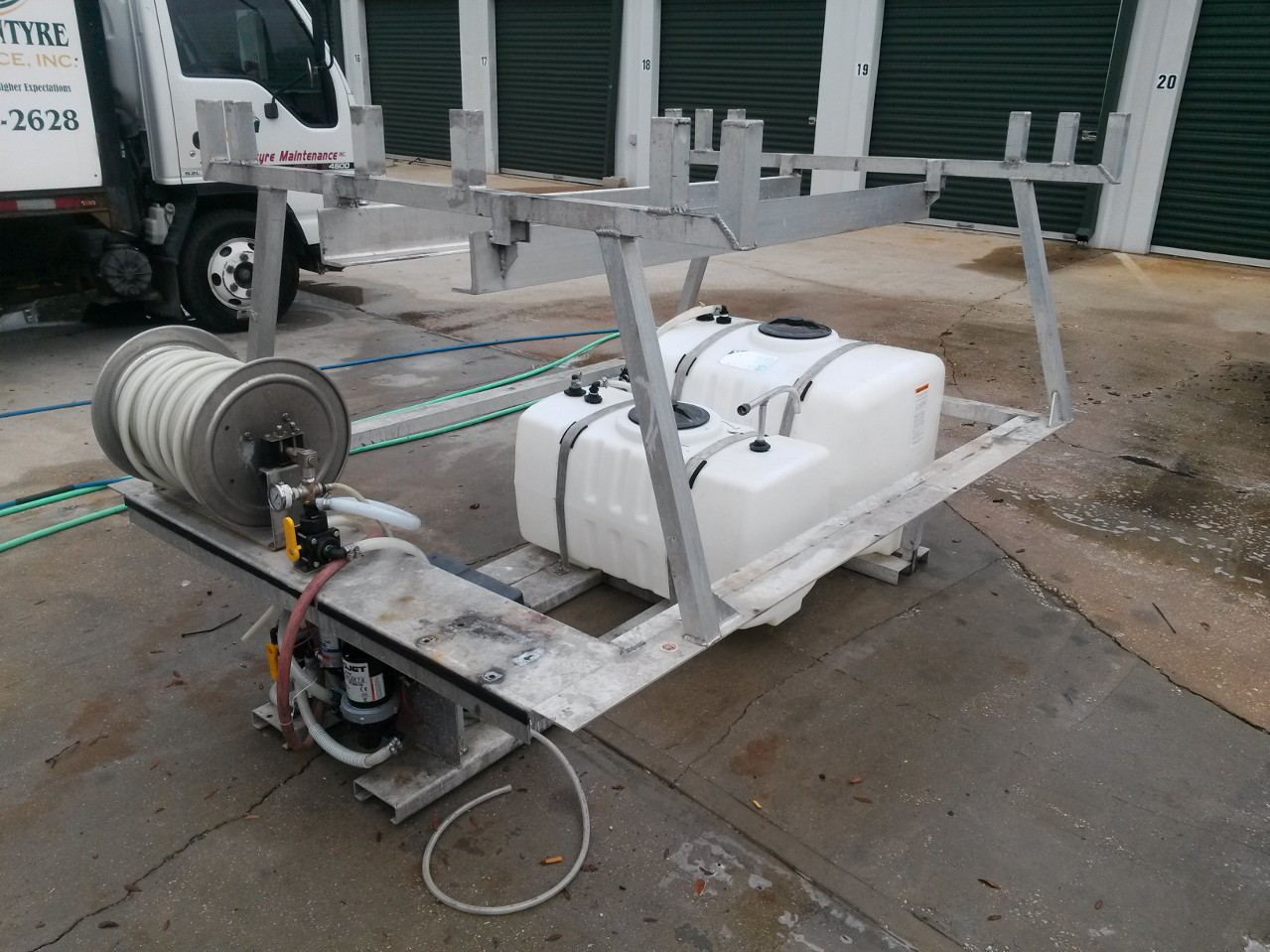 Took this in on trade this week. It is a WELL USED SWS Cradle Skid that was purchased at Softwashapolooza 2012. It has a new penteflex bleach pump on it and a new injection pump. The owner added a welded on flat surface cleaner rack and made a few other additions. I will let this go as is. If I have to clean it up and putative into updating it I will have to sell it for $3,900.00. Take it as is and I will let it go for $2,500.00.