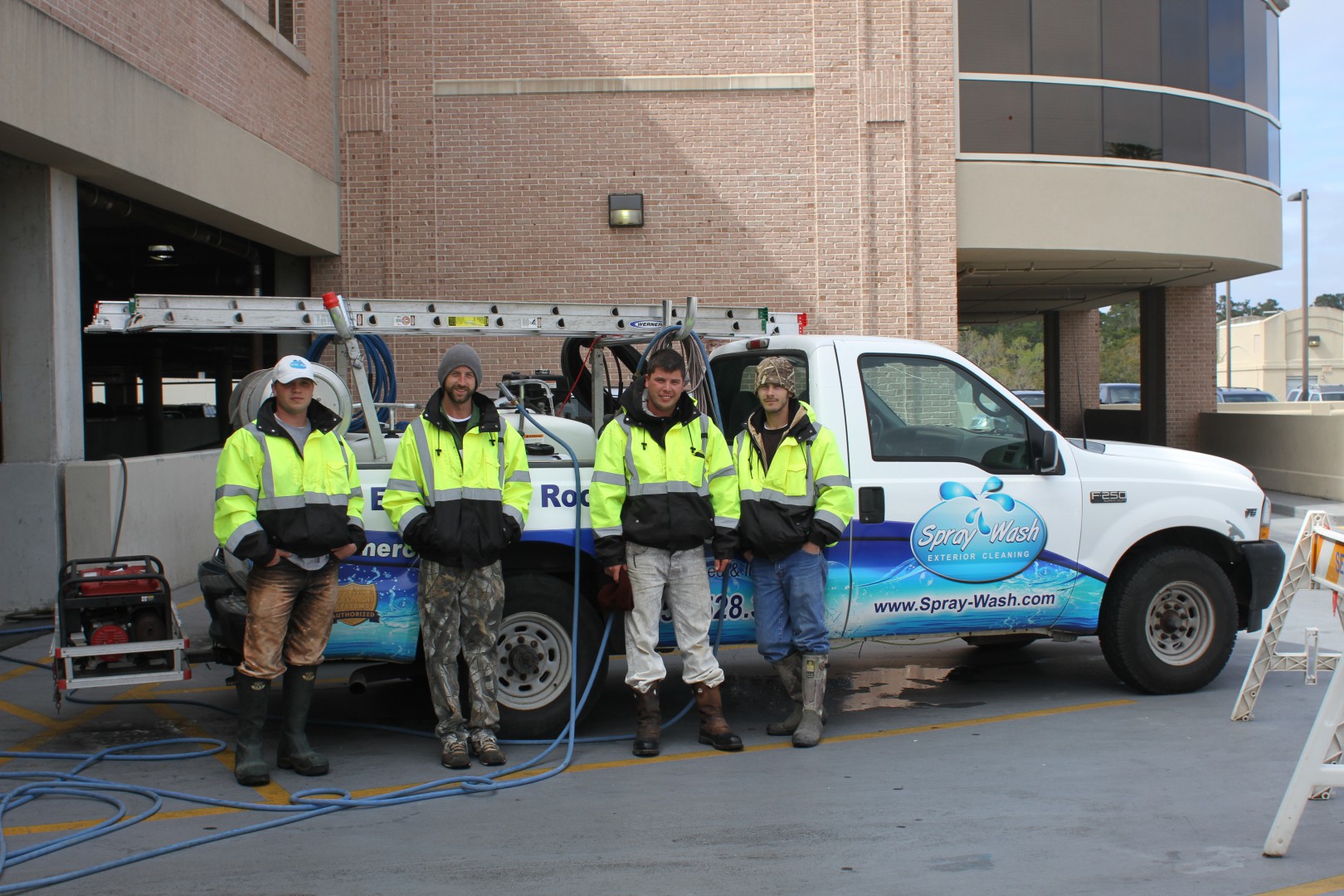 I know thats an overused idiom, but for the job Spray Wash is currently cleaning, that is exactly what we had to do. The Women's Pavilion is a four story building that is located on top of a four story building and garage at Tallahassee Memorial Hospital. It is one of the busiest places in Tallahassee. Women giving birth, visitors, nervous husbands pacing the parking lot and it shares an entrance parking lot with the city's busiest emergency room.