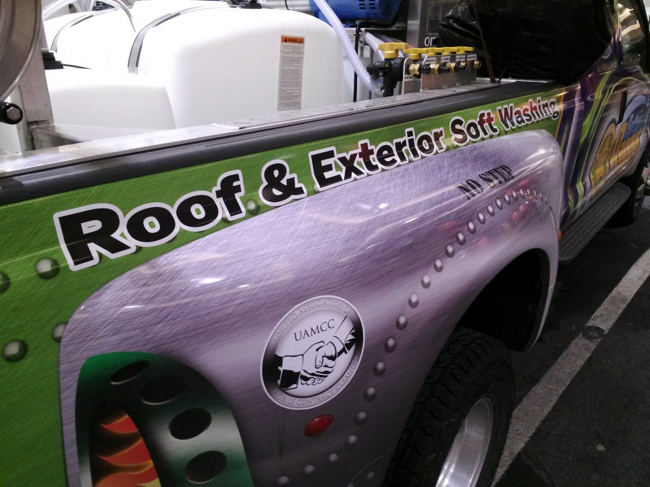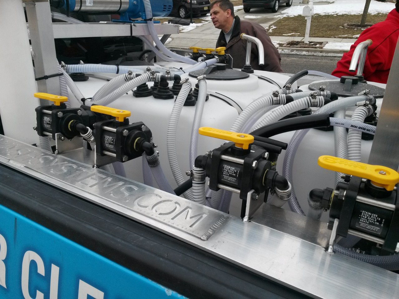 Mario got a new toy as well. His system profiles the new square tanks with a 50/50/100 combo, with a bulk rinse pump attached to the 100 gallon buffer. It also has the full Powder Bleach Pack and Pure Water Pack. He is sporting his new logo and branding design by ProBizGuide.com