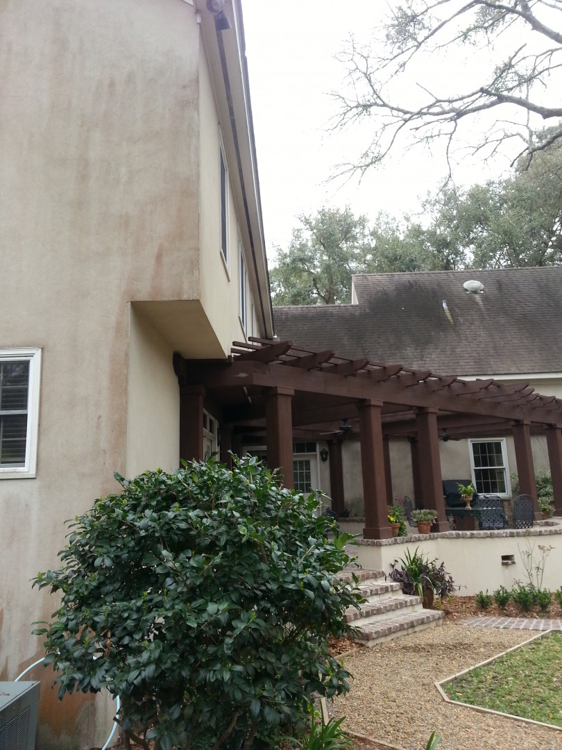 Hey everyone. Have you guys ever dealt with this? A client wants us to clean her roof and this pergola covers her entire back porch. They just had it installed last year so the stain is all in good condition. I was thinking of laying some plywood on it and then covering it with tarps to direct the runoff. What do you guys think? Any other suggestions that have worked?
