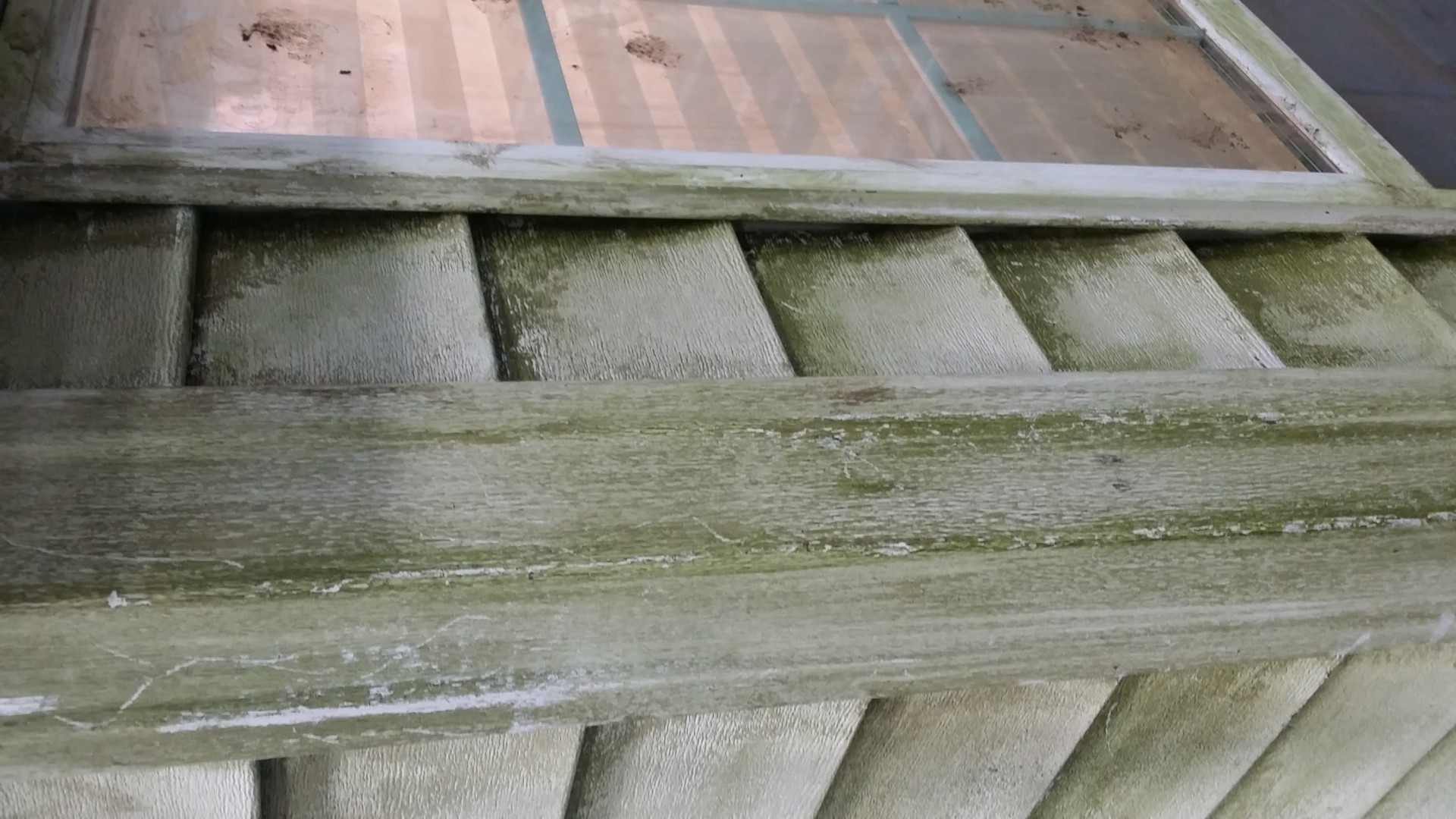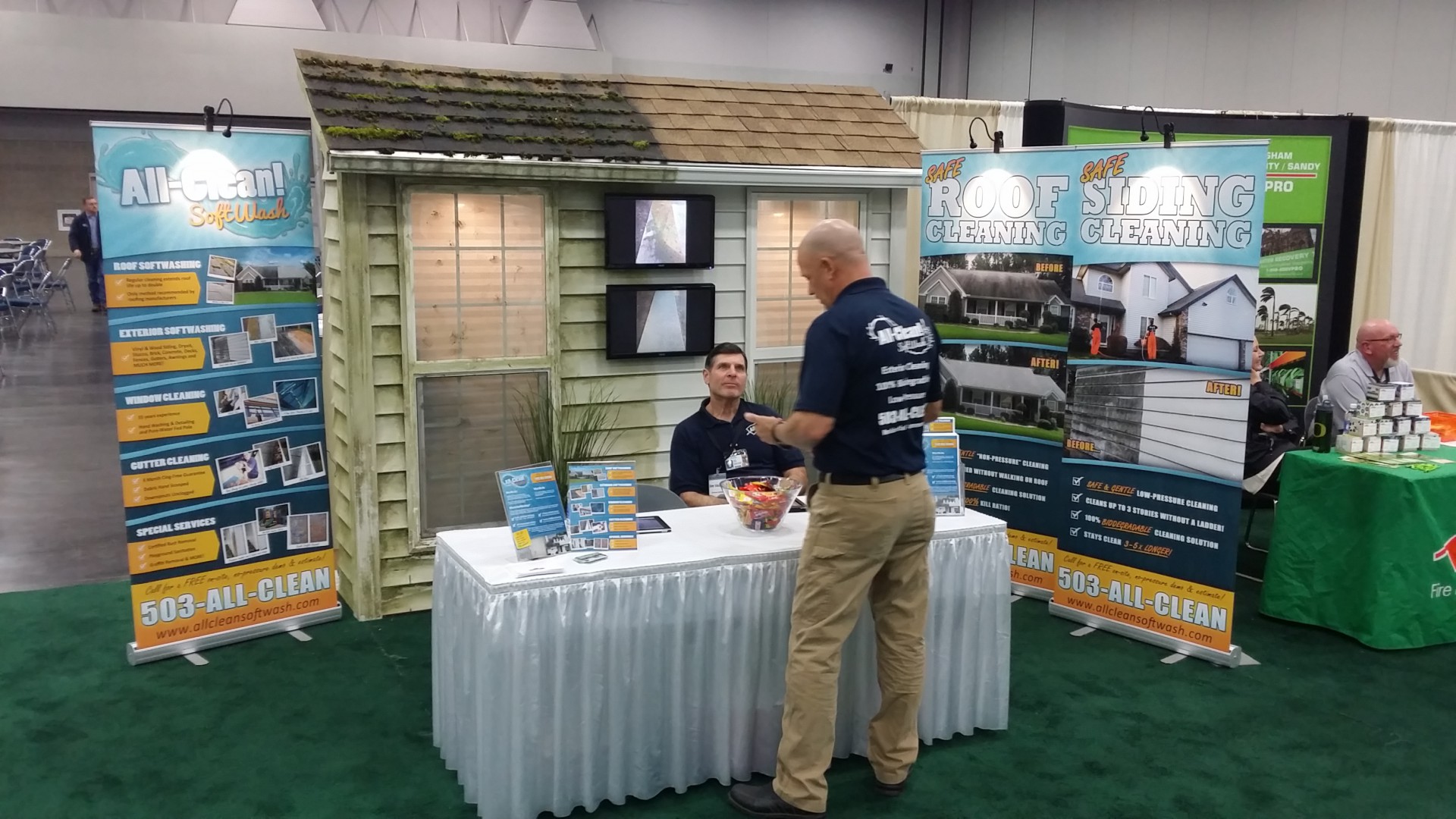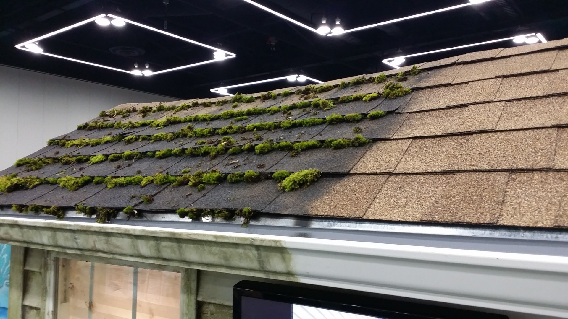 We built a small roof/house/gutter demo. We used black spray paint to infect half the roof and simulate oxidation on the gutter then we used green spray paint from a distance to show algae on the siding. We set it up at trade shows