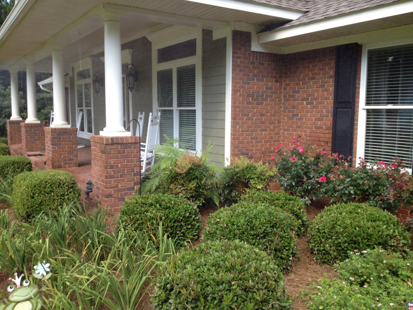 Interesting picture, in one shot I've got four of the most bleach sensitive plants out there. Nandina, ferns, roses, and Boxwood. On jobs such as this it really pays to give extra attention to landscaping and use your plant wash even though you're only using a .5% mix on the vinyl.