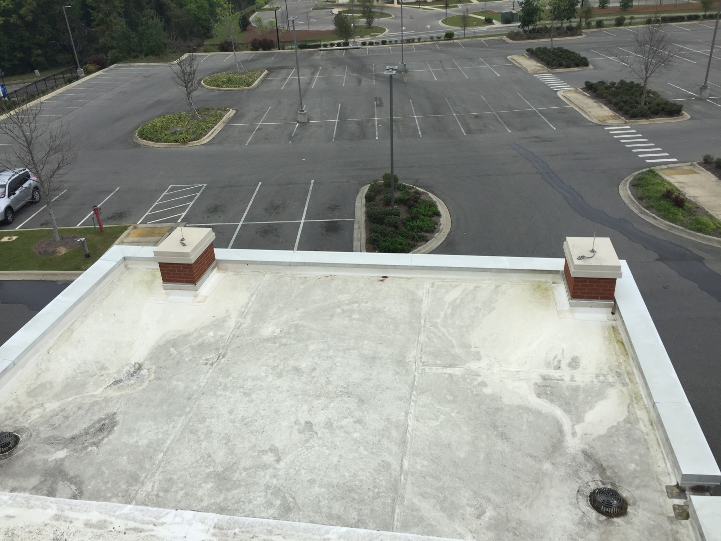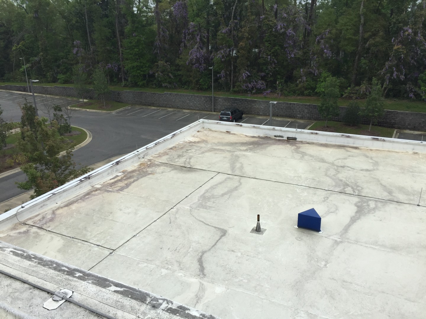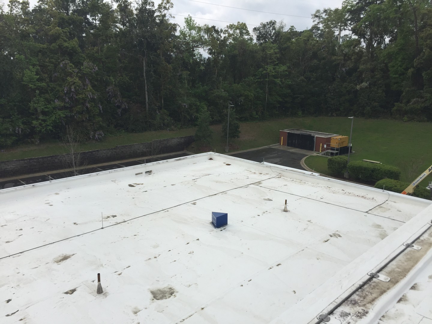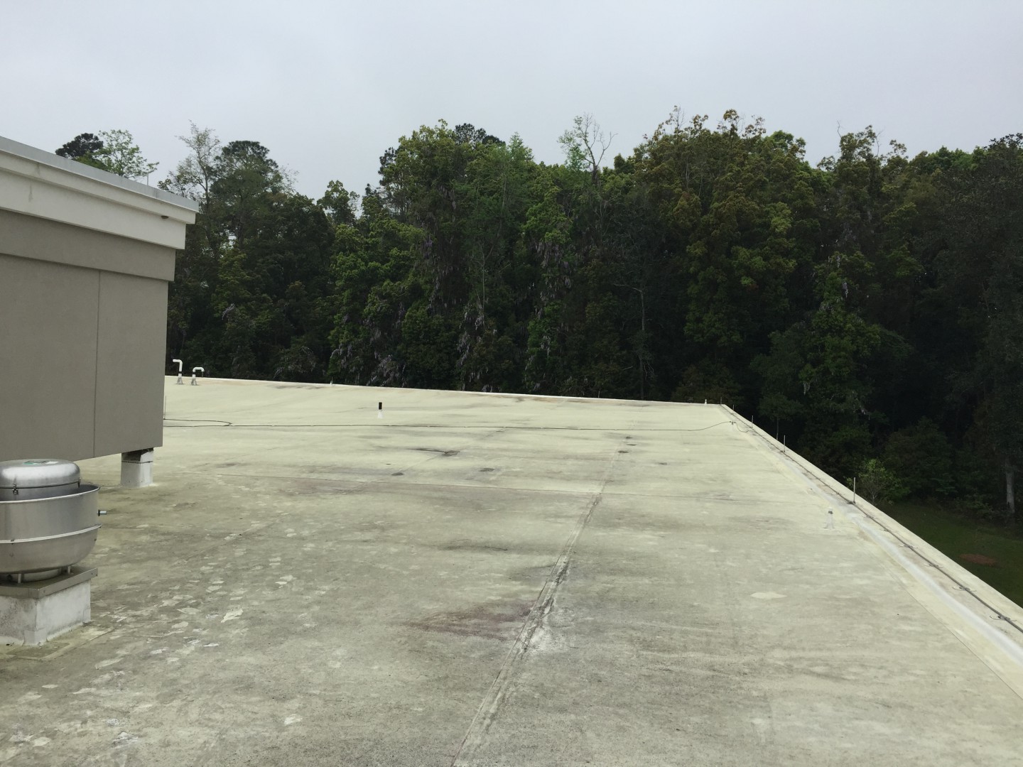 Photos from our cleaning of a membrane roof at Tallahassee Memorial's Cancer Center, Tallahassee, Florida