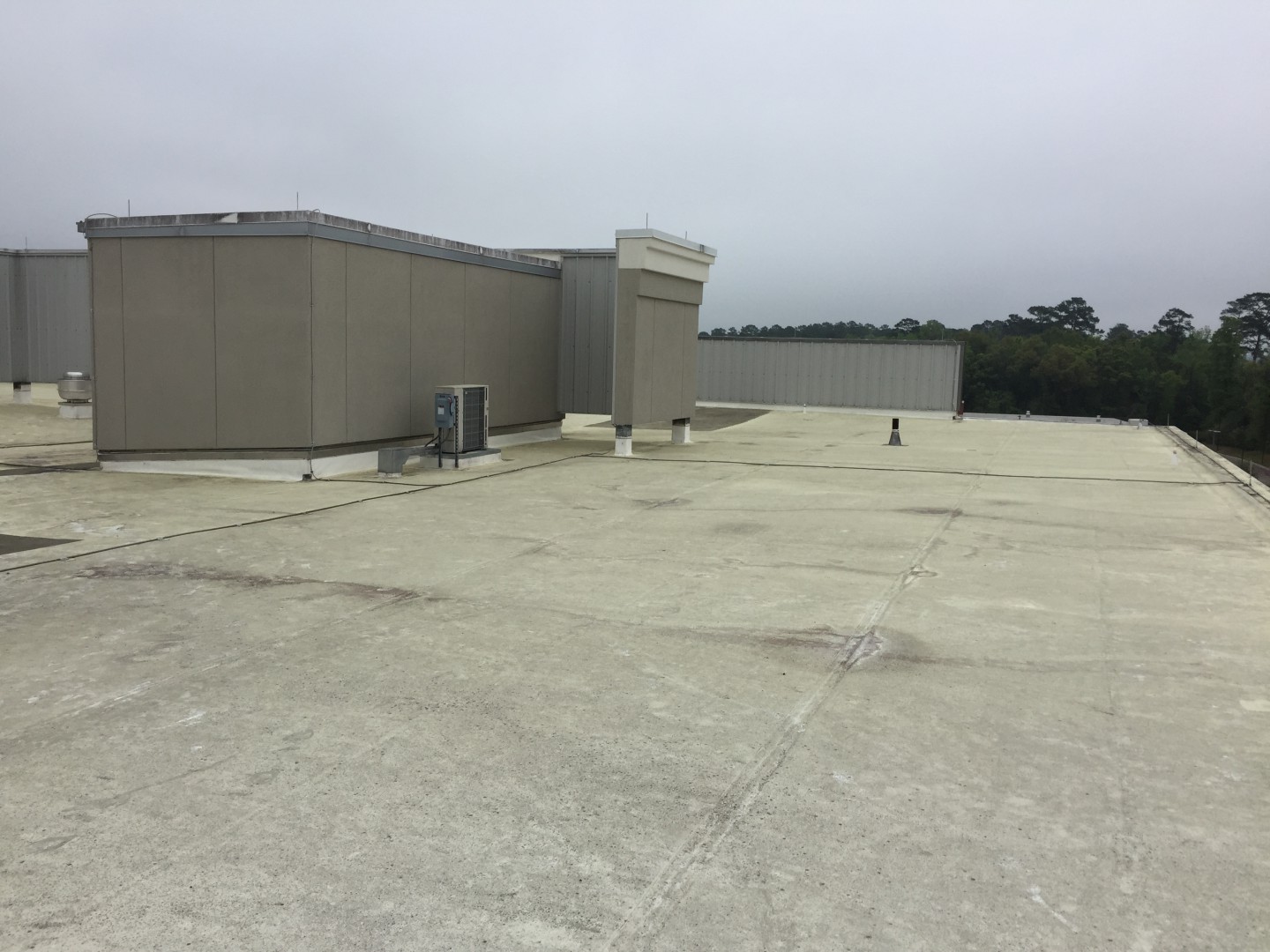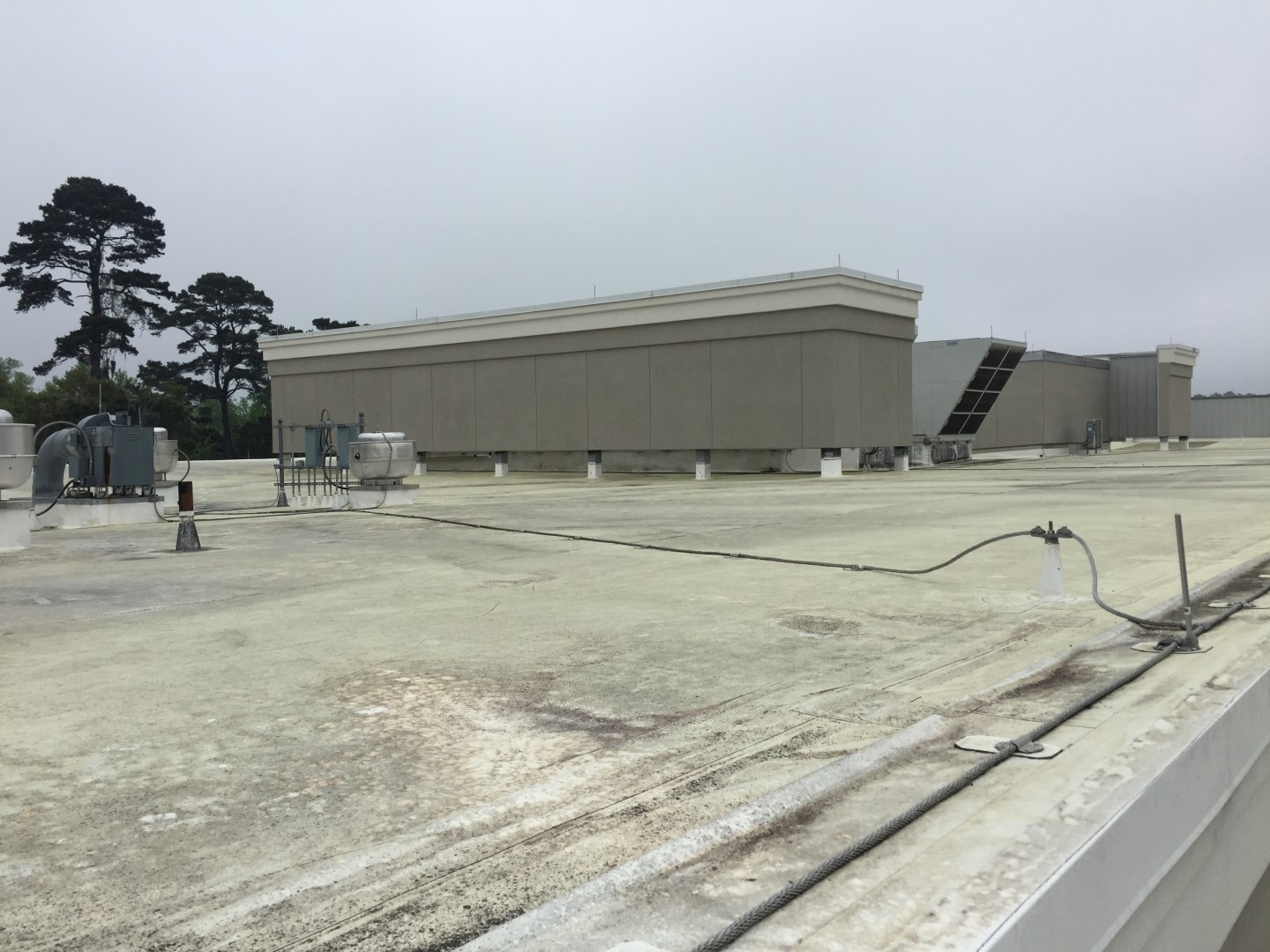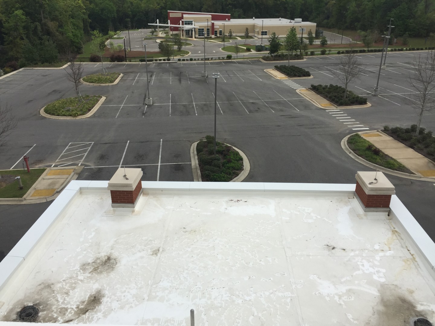 Photos from our cleaning of a membrane roof at Tallahassee Memorial's Cancer Center, Tallahassee, Florida