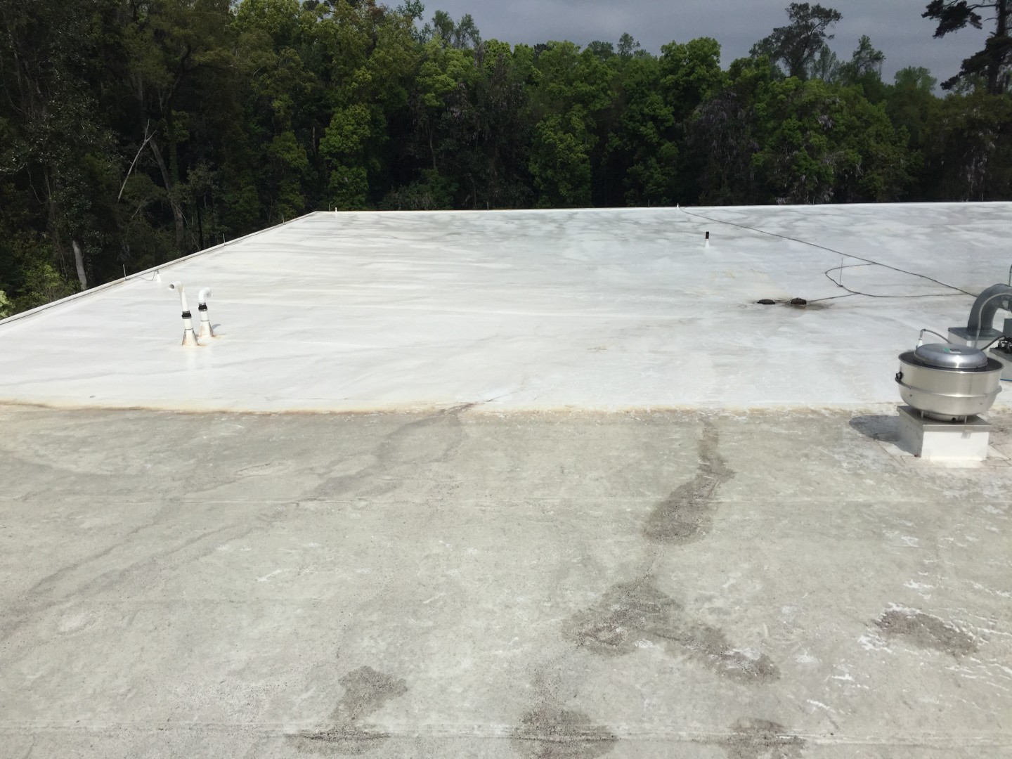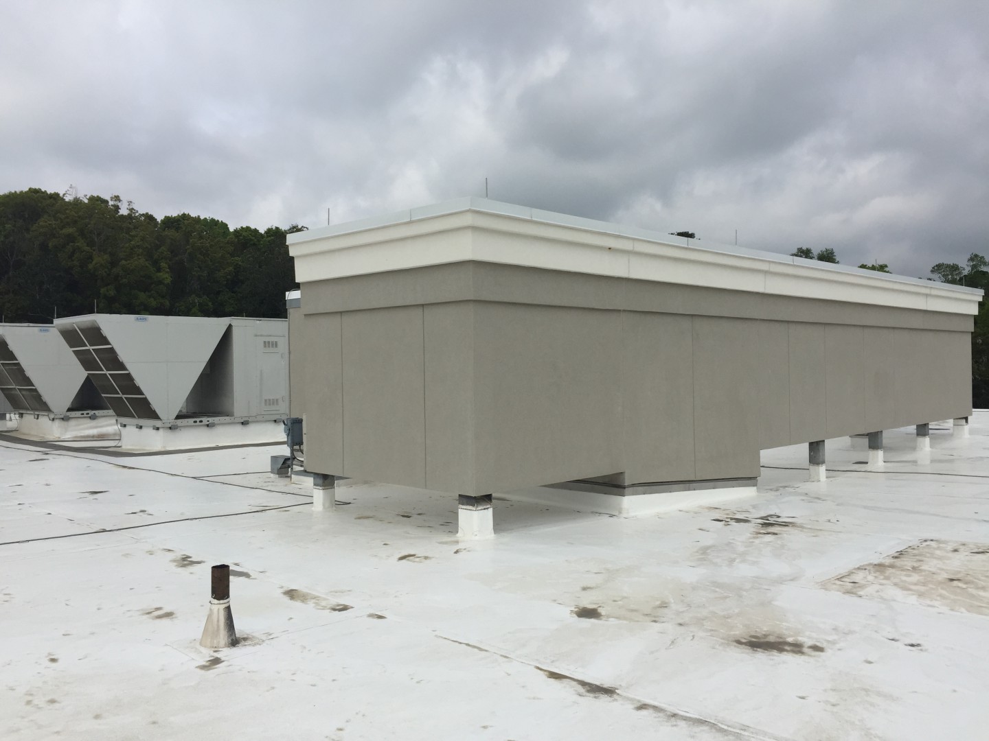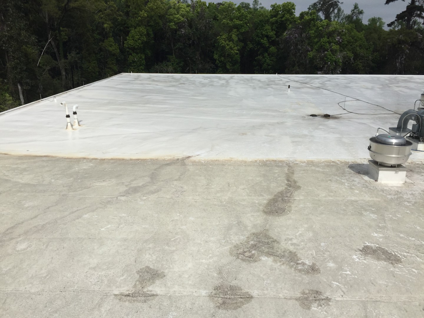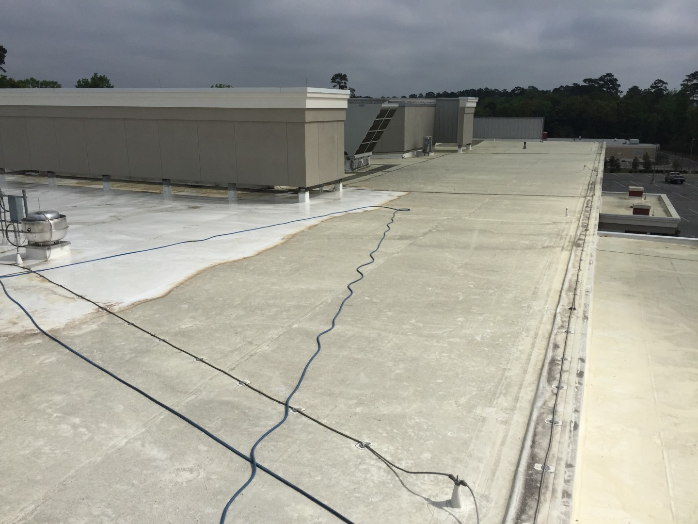 Photos from our cleaning of a membrane roof at Tallahassee Memorial's Cancer Center, Tallahassee, Florida