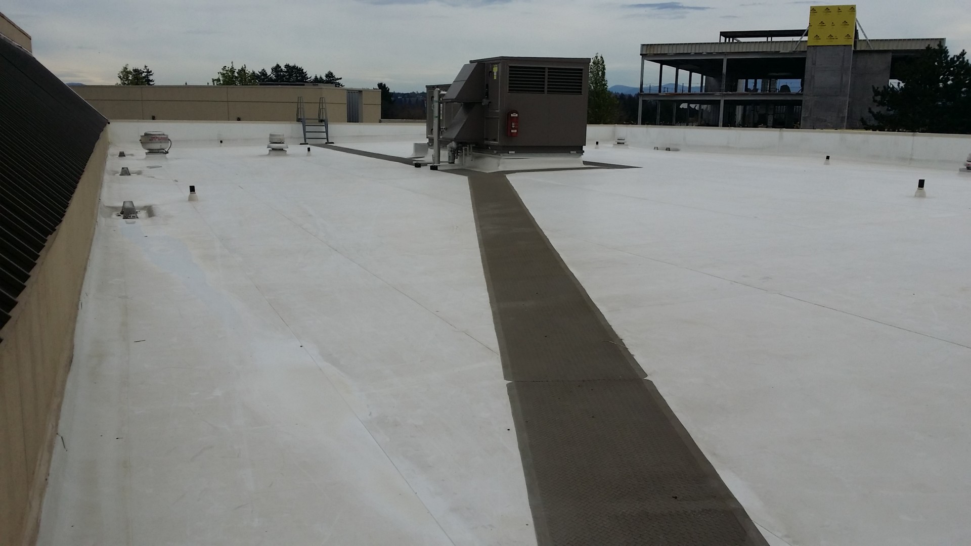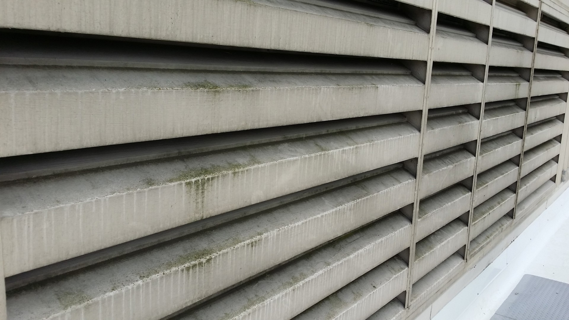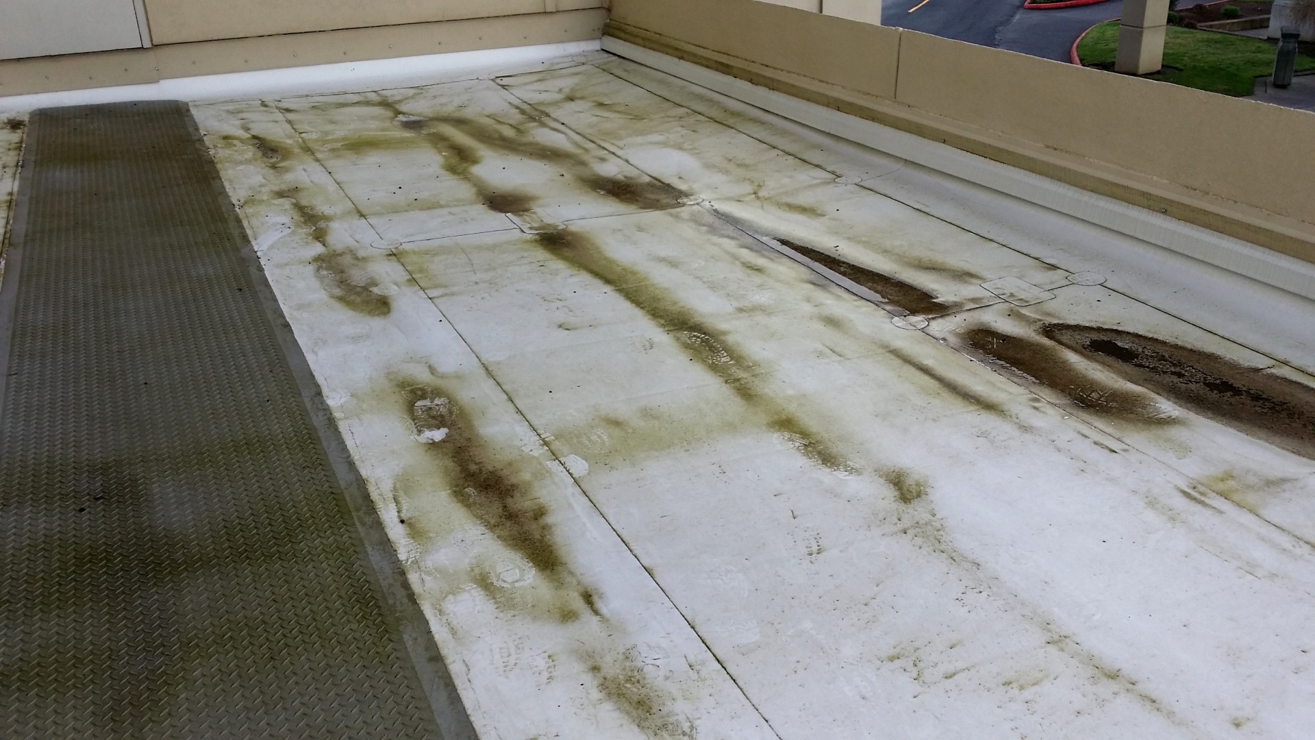 Cleaning also included the TPO roof to maintain the roof warranty and the ER glass entrance canopy. We were able to kill and remove mold growing on the HVAC intake louvers of the main hospital, as well as remove years of rust build-up and oxidation stains and streaks.