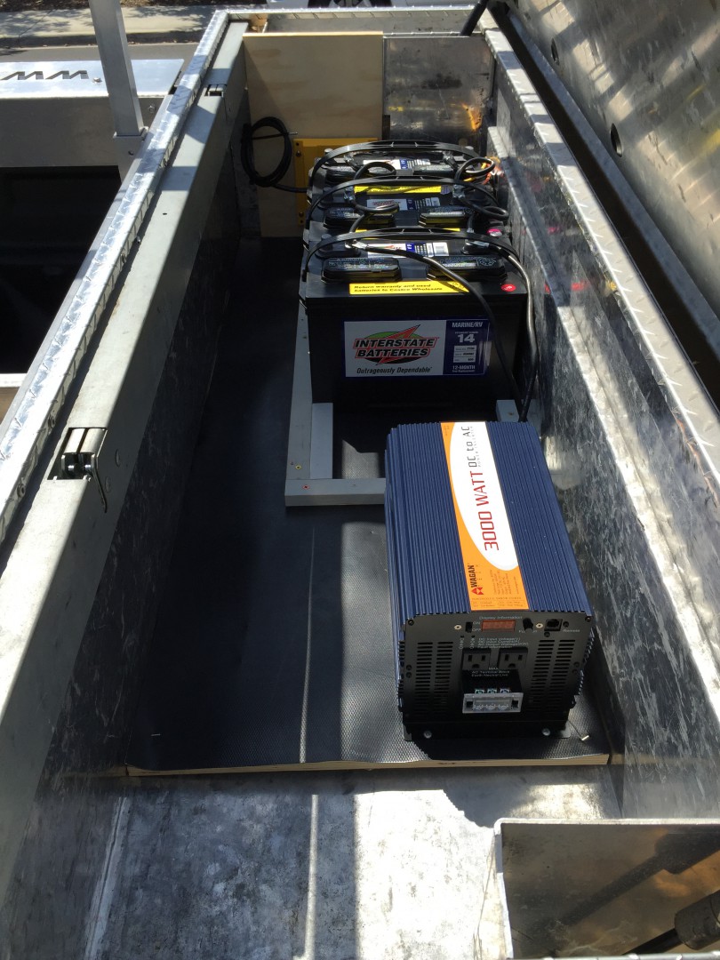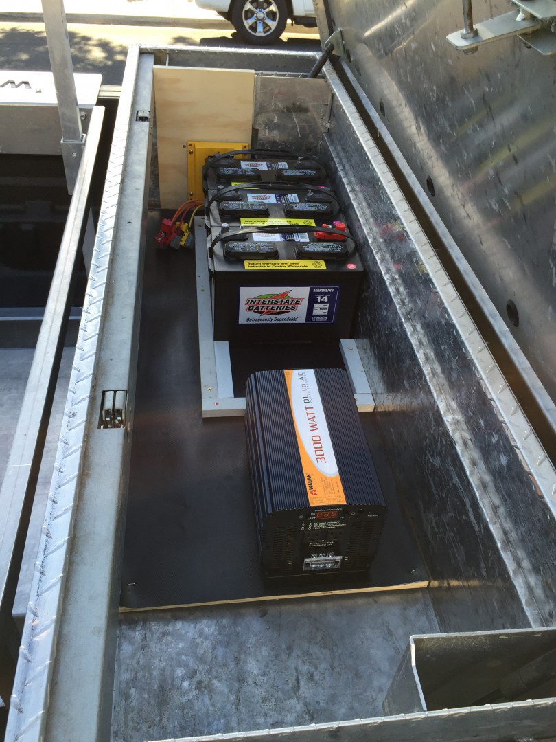 Josh very clean install. My only suggestion would be to ad another set of wires from the batteries to the inverter. This will allow the inverter to run cooler and will also allow you to get closer to the watts rating. Other than that nice job.
