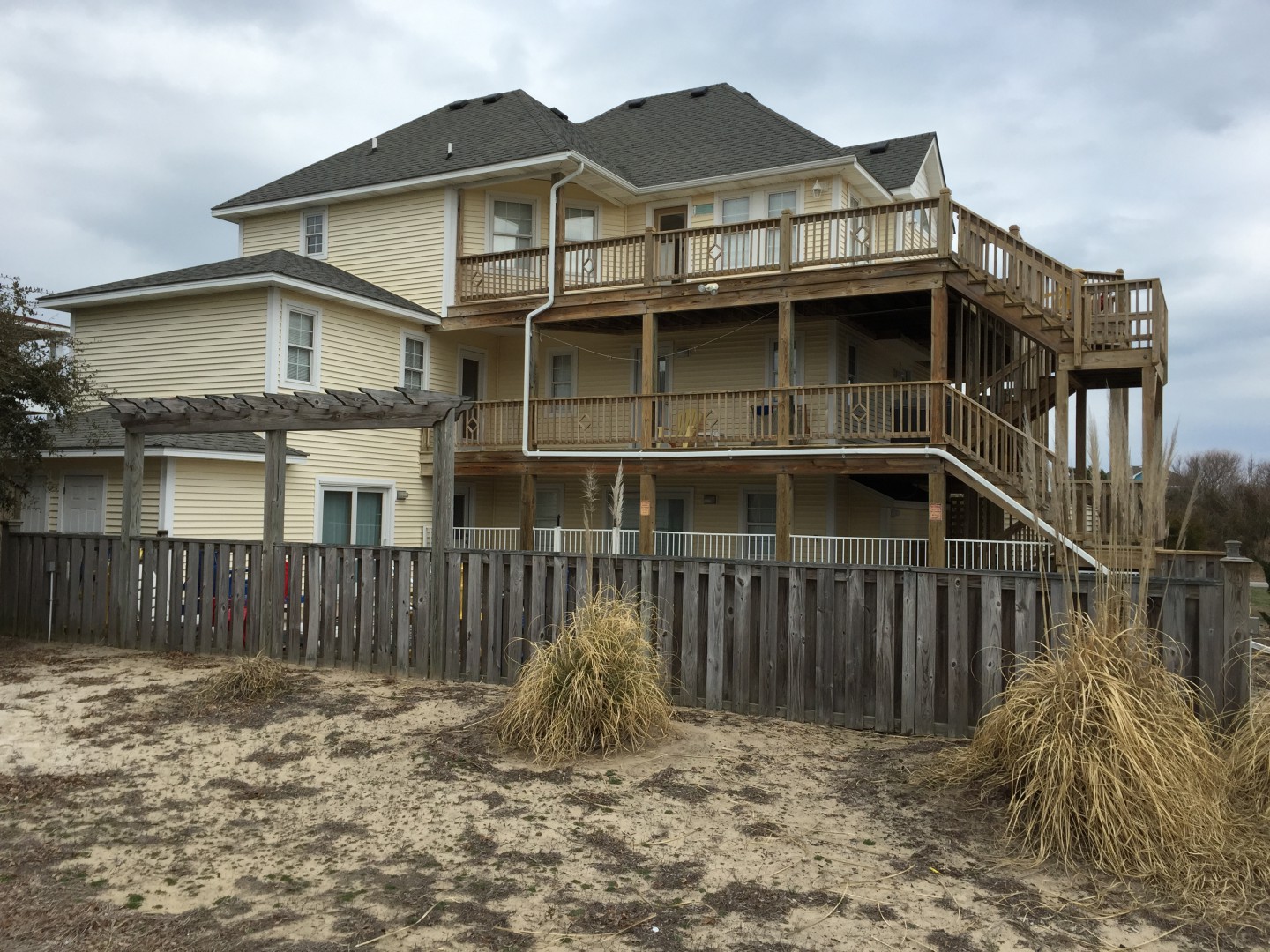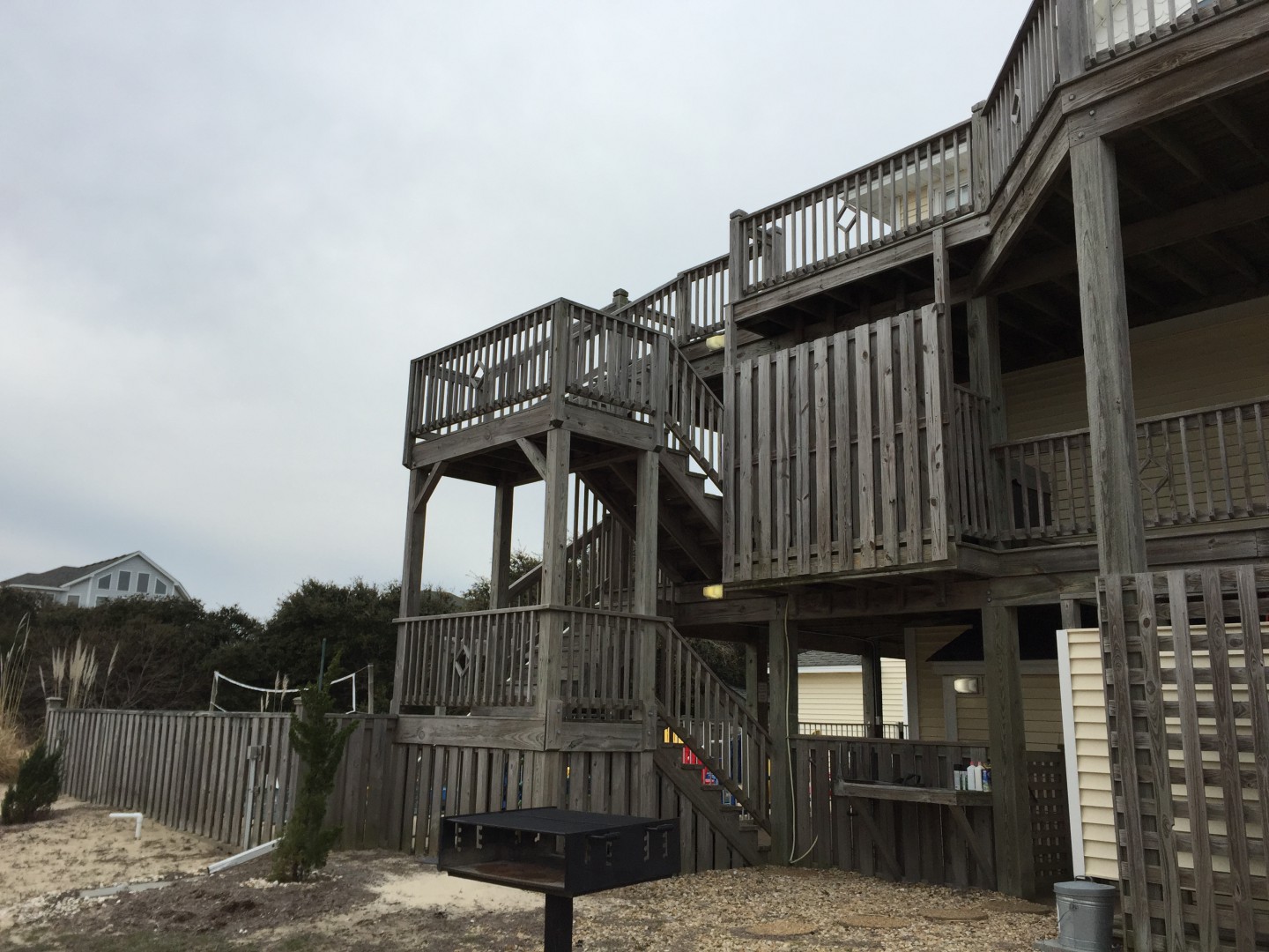 Here is a picture of the house I'm thinking of using this on. I may end up just doing the floor boards and the tops of the railings (horizontal surfaces only). I'm afraid if I try to spray all the vertical surfaces it'll get all over the siding and create a ton more work.
