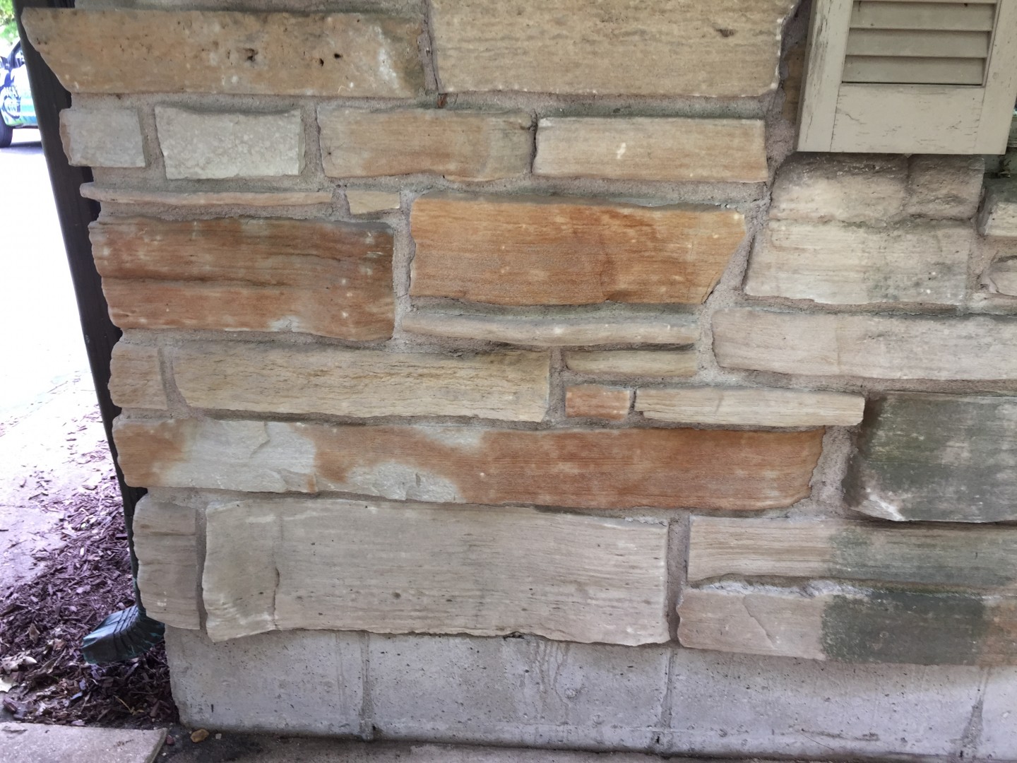 We did go back and do the asphalt shingles and the stone. The company that he had did a great job, and they did use a pressure washer, probably a very low psi one.