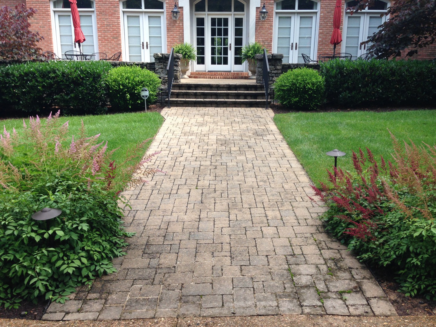 This will definitely clean up easily. One way to help sell this is that that the softwashing will last longer. Also, I would definitely try and sell her on sealer. It will keep the surface drier, further helping to inhibit growth of organisms. Sealants like Seal N Lock also enhance color and make the pavers "pop."